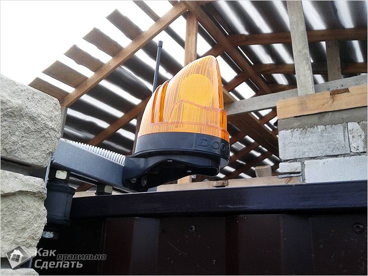 - Warnlicht mit einer Rakete und Antenne. Solche Elemente haben oft einen blinkenden Modus, der viel Aufmerksamkeit auf sich zieht. Billige Signallampen produzieren heute Marken wie Came, DoorHan, AN-Motors, Nizza.
