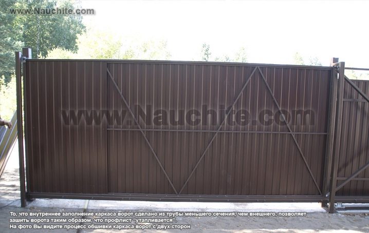 Im Produktionsprozess ist das Profil mit speziellen Schutzmischungen überzogen, die den Rahmen korrosionsbeständig machen. Haltbares und haltbares Metall wird auch in der Schaffung des Machtrahmens verwendet, der ein tragender Teil ist. Durch den Einsatz solcher Materialien können wir sicher von der Zuverlässigkeit und Langlebigkeit solcher Tore sprechen. In der Regel werden ihre Rahmen deshalb betoniert Selbst ein sehr starker Wind lockert sie nicht und sie halten sehr fest.