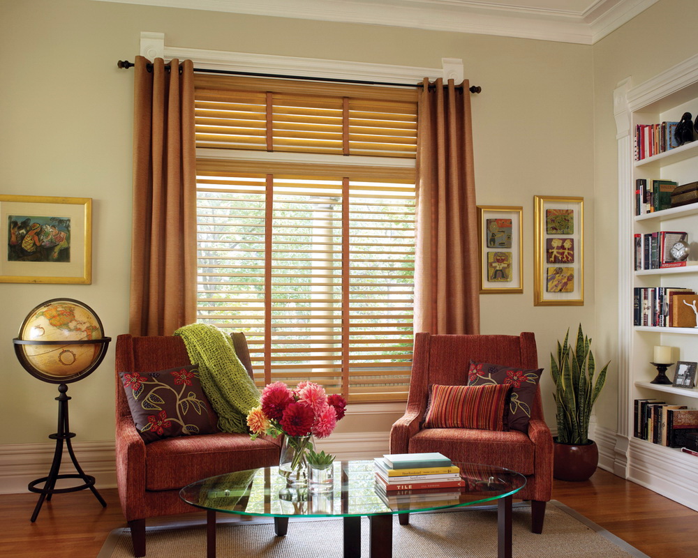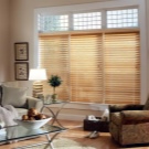 - Vielseitigkeit. Holzjalousien passen in fast jeden Innenraum. Sie bilden eine harmonische Kombination mit jeglichen Möbelstücken oder Vorhängen, da bei ihrer Herstellung verschiedene Arten von Rohstoffen verwendet werden. Wenn Sie ein Designprojekt mit Holzjalousien machen, ist es einfach, eine Vielzahl interessanter Kombinationen zu erstellen. Es wird angenommen, dass die erfolgreichste "Nachbarschaft" für solche Produkte Möbel und Vorhänge aus natürlichen Materialien sein werden;