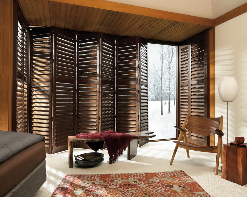 Holzjalousien schützen nicht nur vor dem zusätzlichen "Anteil" des Lichts, sondern auch vor dem Dekor, was großen Einfluss auf die Ästhetik und die stilistische Wahrnehmung des gesamten Innenraums hat.Sie haben die Fähigkeit, das Innere auszubalancieren: sie werden zur reich edlen Einfachheit und Wärme und zur bescheidenen Gnade beitragen. Auch Holzjalousien können harmonisch in verschiedene modernistische Stile passen: Hi-Tech und Minimalismus dank ihnen wird nicht mehr so "kalt" sein.