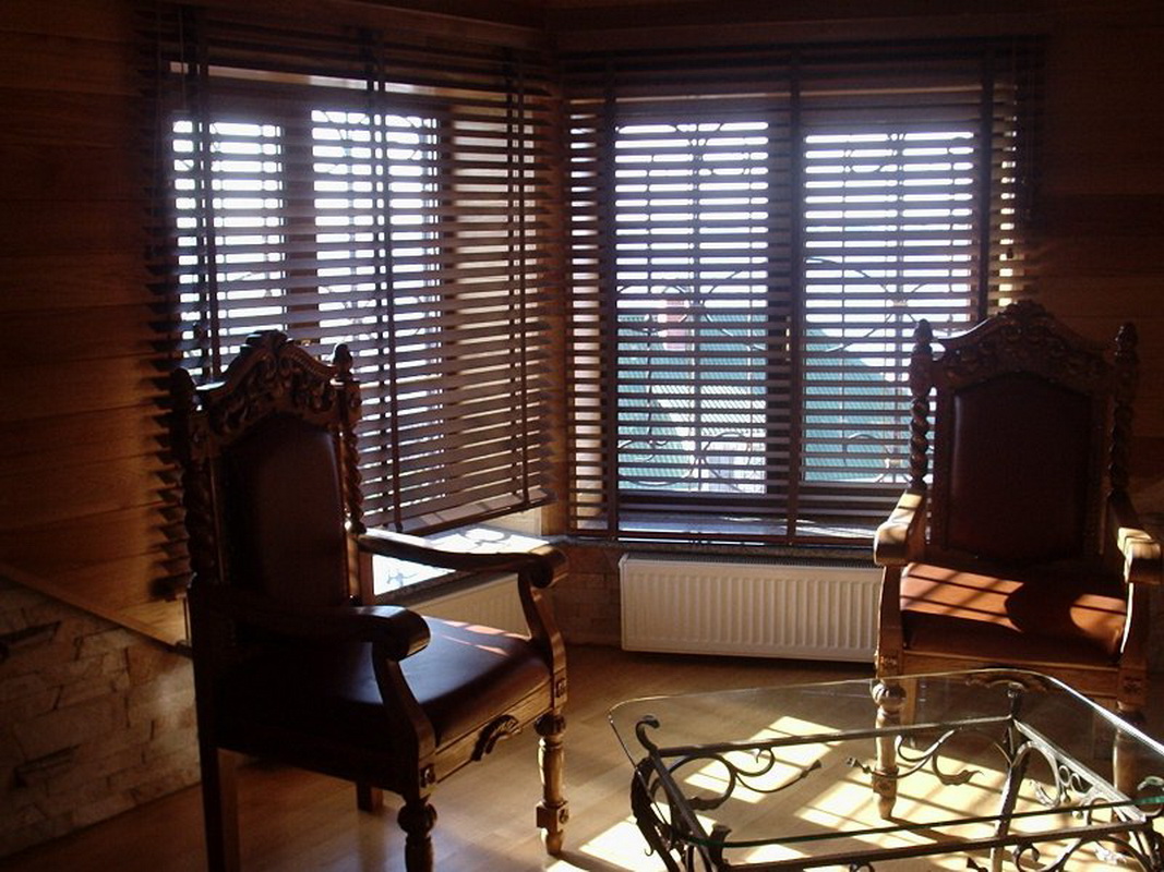 - Hoher Schutz Exposition gegenüber Sonnenlicht. Aufgrund der Besonderheiten des Ausgangsmaterials und der Konstruktion von Rollläden aus Holz ist es besser, den Raum vor UV-Strahlen zu schützen.