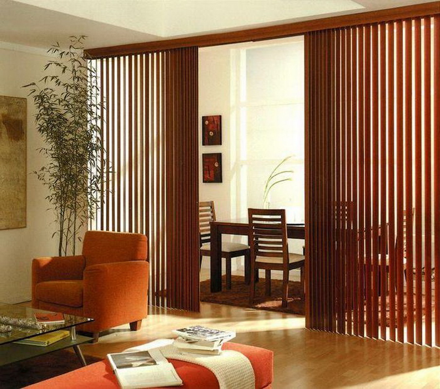 - Vertikale Holzjalousien werden oft verwendet, um Designer-Designs zu erstellen. in östlichen, ethnischen und ländlichen Stilen.