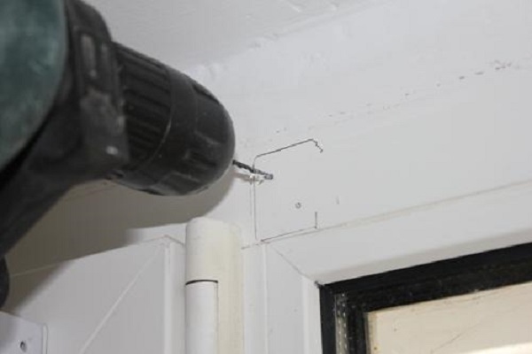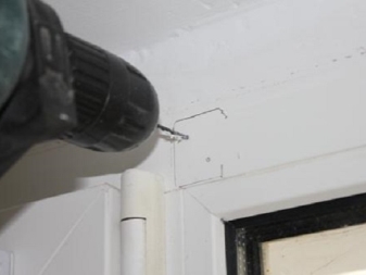 - Bohren Sie danach Löcher und befestigen Sie die Befestigungselemente. Sie sollten nicht tief bohren, da Sie ein Durchgangsloch machen können. Wenn die Fixierung direkt auf dem Kunststoff erfolgt, sollten Sie spezielle Schrauben verwenden.