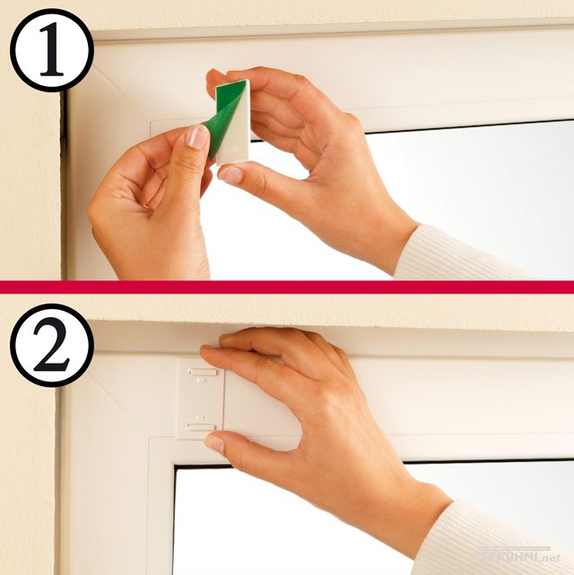 - Doppelseitiges Klebeband Die Befestigung kann direkt mit Klebeband oder mit speziellen Klammern erfolgen. Die letzte Option beinhaltet die Befestigung von Befestigungselementen mit diesem Band. Bitte beachten Sie, dass diese Installationsmöglichkeit nur am Fensterflügel selbst möglich ist. Um eine zuverlässige Fixierung zu erreichen, ist es wichtig, die Oberfläche vorher zu entfetten. Danach wird die Markierung gemacht.Es ist notwendig, dass die Leinwand genau parallel zur Lotlinie liegt. Wenn eine Vorspannung vorliegt, führt dies zu einem schnellen Verschleiß des Steuermechanismus. Wenn das gesamte System ausgerichtet ist, können Sie die Struktur im Fenster fixieren.