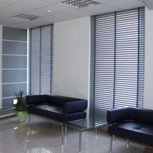 Halten Sie dazu ein feuchtes Tuch auf eine schmutzige Oberfläche. Einige Hausfrauen reinigen Plastikkonstruktionen mit einem Staubsauger. Jalousien mit horizontalen Streifen sind kompakt genug, deshalb sind sie ideal für kleine Räume.Aufgrund des strengen und übersichtlichen Erscheinungsbildes solcher Strukturen passen sie gut in die Büroflächen.