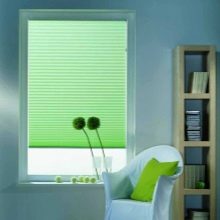 Die Option mit einem Klebeband ermöglicht Ihnen, die Jalousien sowohl an dem Fenster, das sich nicht öffnet, als auch an dem Faltsystem fest zu befestigen. Spezielles Klebeband kann einem solchen Design mehrere Jahre standhalten. Diese Methode gilt als die zuverlässigsten und einfachsten Spezialisten.