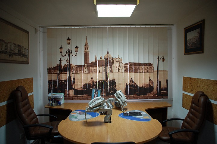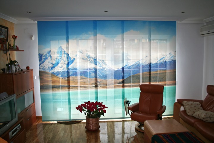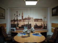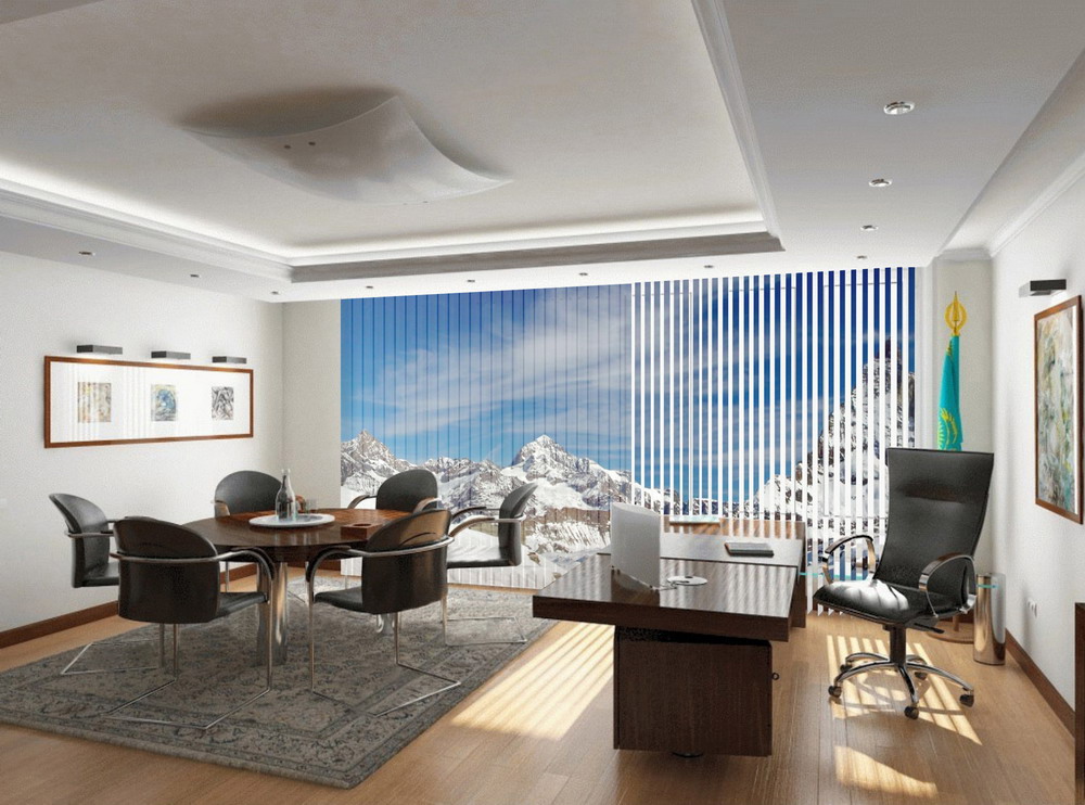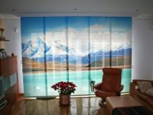 Für das Wohnzimmer wird der Fotodruck mit einem Bild der Landschaft verwendet, um den Raum optisch zu erweitern, wodurch der Raum größer wird. Für das Büro wäre die ideale Lösung die Platzierung von Jalousien mit einer Meereslandschaft oder ein orientalischer Druck. Blaue Farbe fördert die Konzentration, und orientalische Stoffmuster können Wohlbefinden anziehen. Für Panorama-Fensteröffnungen wäre die beste Option, eine ruhige Farbe zu verwenden. Zum Beispiel dekorieren Sie ein Zimmer mit Fotodruck mit dem Bild eines monochromen Stadtbildes in der Nacht, Naturlandschaften oder Sehenswürdigkeiten.