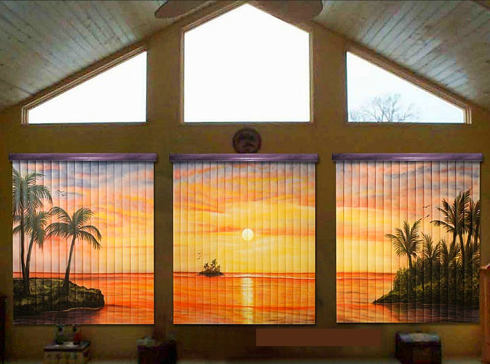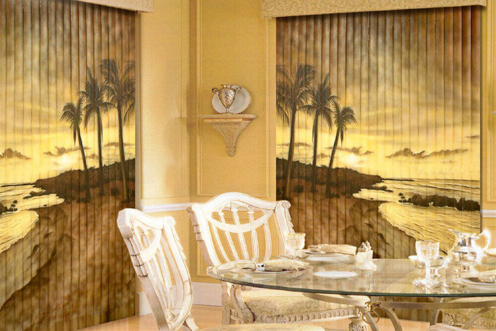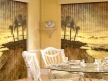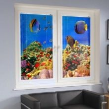 Je nachdem, welches Material für die Herstellung von Jalousien mit Fotodruck verwendet wird, sowie wie sich die Lamellen befinden, Für dieses Dekorelement gibt es mehrere Möglichkeiten: