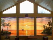 - Horizontal. Der Fotodruck in dieser Ausführungsform kann auf Kunststoff, Holz, Stoff oder Metall angewendet werden. Sie sind horizontale Lamellen, die sich entlang aller Führungen bewegen und ihre Position relativ zur Ebene der Fensterscheibe verändern. Ein solches Zubehör für Fenster ist am wenigsten verbreitet, da es viel schwieriger ist, ein schönes Muster auf schmale Lamellen aufzubringen als auf breite Analoga oder auf eine feste Leinwand.