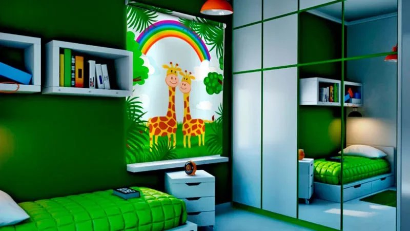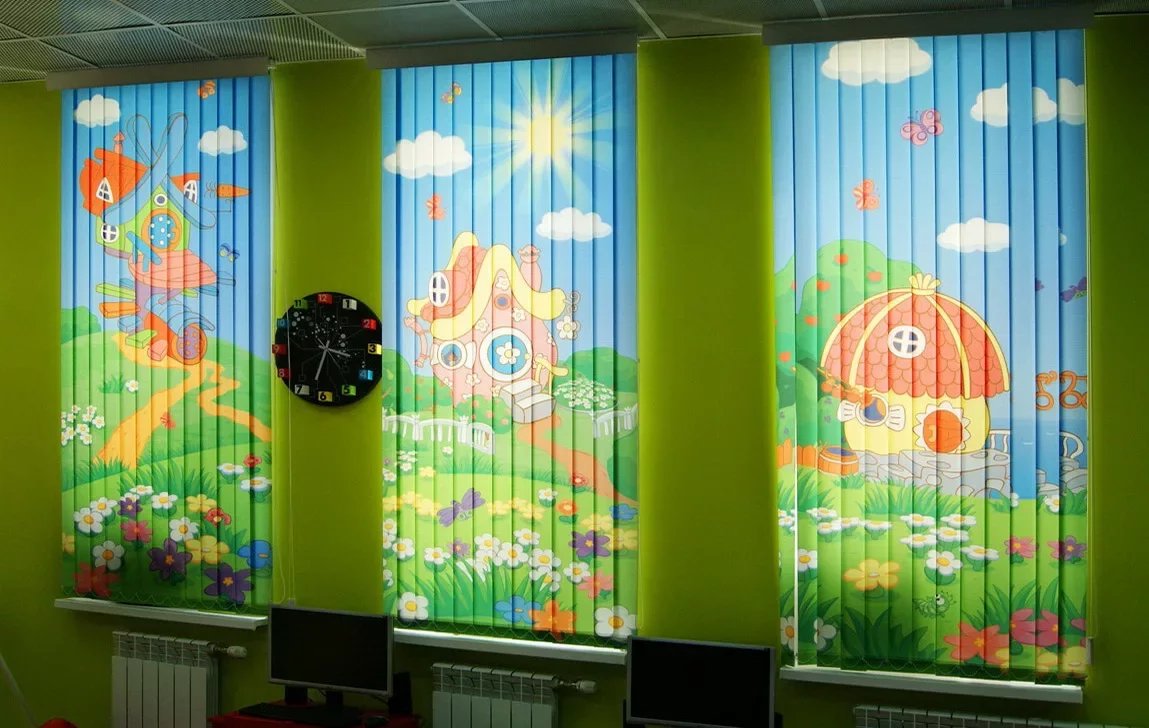 Damit das Bild sich harmonisch in das Rauminnere einfügt, müssen Sie die Funktionalität eines solchen Raumes berücksichtigen. Für den Kindergarten wird eine echte Dekoration aus einem Cartoon, Tiere, lustige Bilder. Verwenden Sie für die Registrierung eines Kunststoff-Fenster Jalousie, kombiniert sie mit den üblichen Vorhängen oder vertikalen Vorhängen. Um dem Kind zu gefallen, fragen Sie seine Meinung, welche Art von Bild er angenehmer wäre zu betrachten.