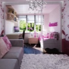 Lorsque l'enfant atteint l'âge de 7 ans, laissez-le essayer de déterminer le design de sa chambre, y compris le choix du mobilier nécessaire. N'hésitez pas à vous rendre au magasin de meubles avec la fille, à lui demander quelles couleurs elle aime le plus, quels motifs elle serait plus facile à tracer et à quel point le canapé est confortable pour elle.