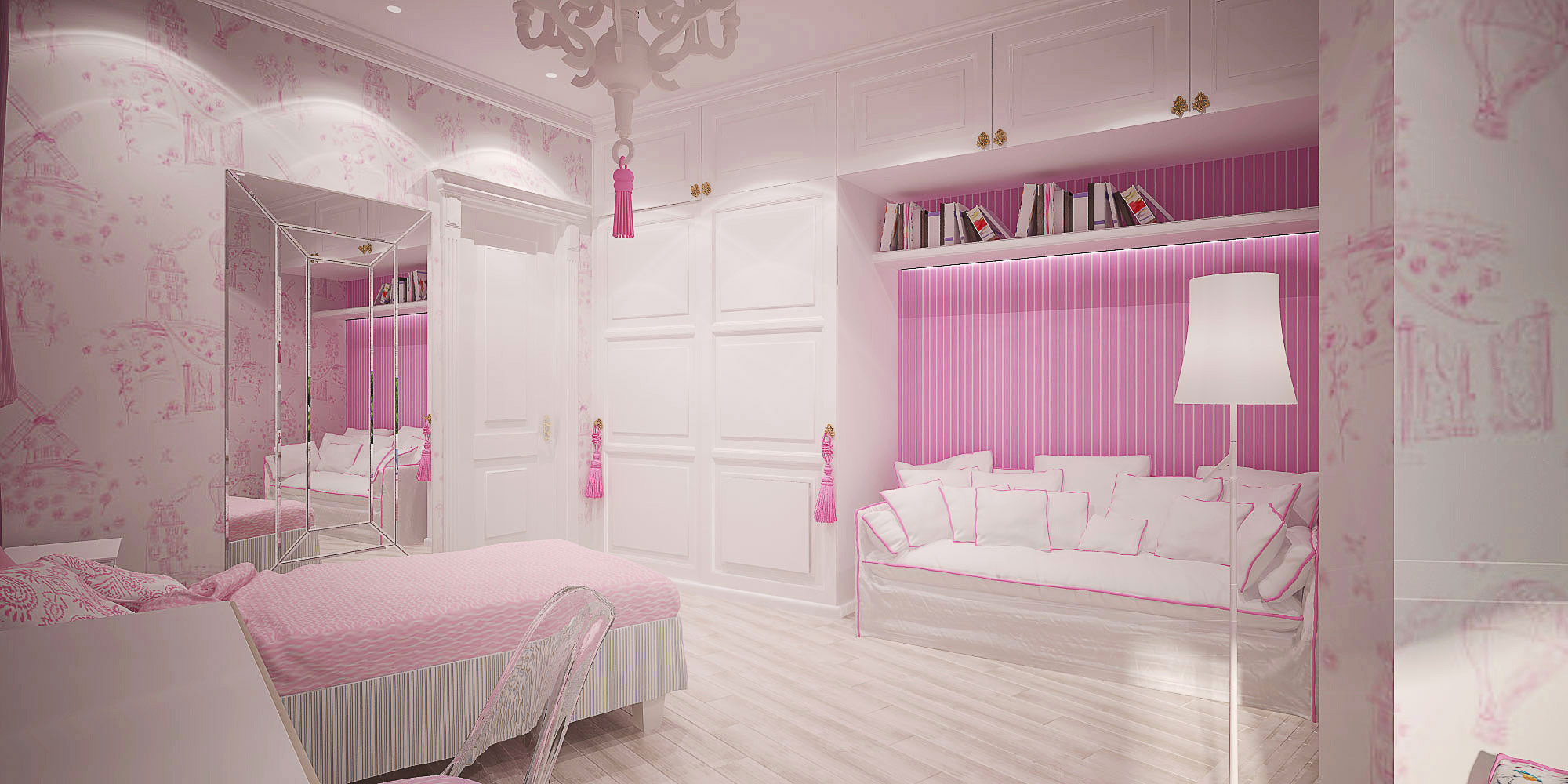 Les couleurs les plus populaires chez les filles sont les teintes jaune, orange, rose, violet et doré. Les enfants ont tendance à décorer leur chambre pour créer une certaine ambiance. Ils aiment se vanter auprès de leurs amis. En outre, c’est l’endroit où ils passent une bonne partie de leur vie, jouent à des jeux, se détendent, font parfois leurs devoirs.