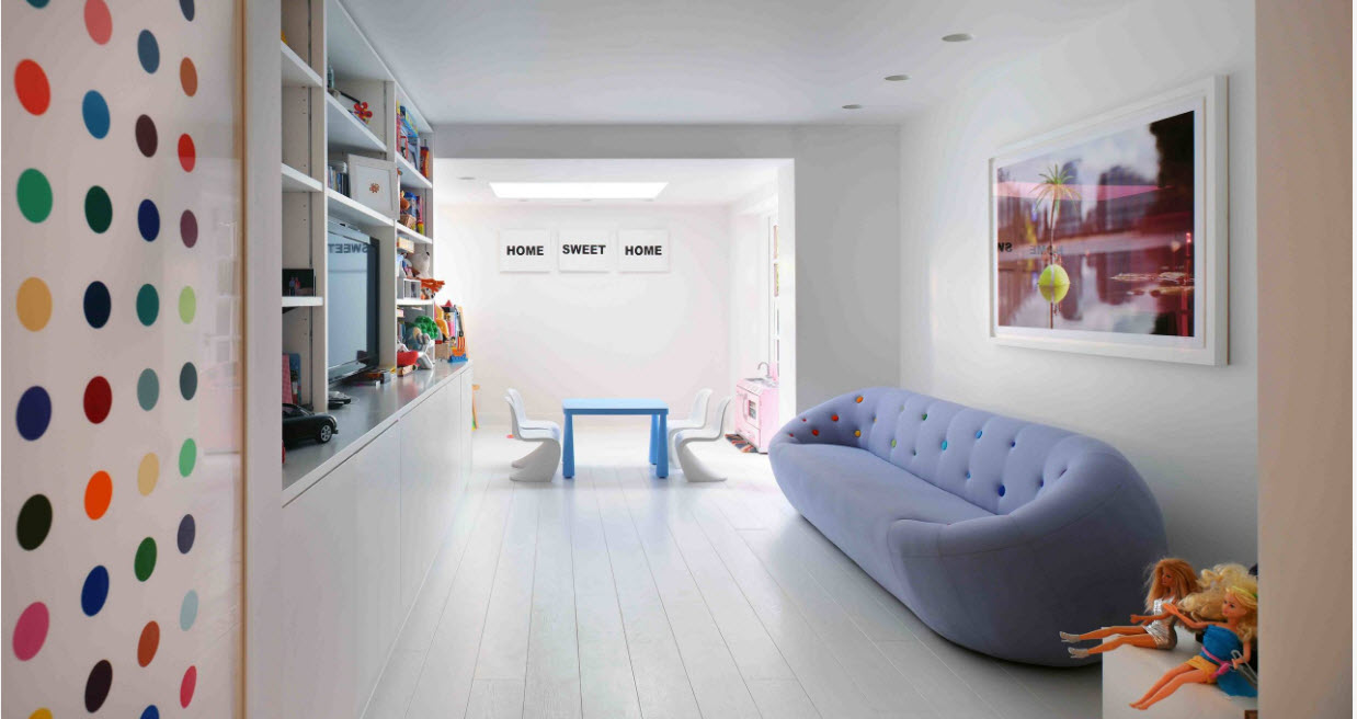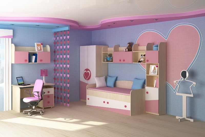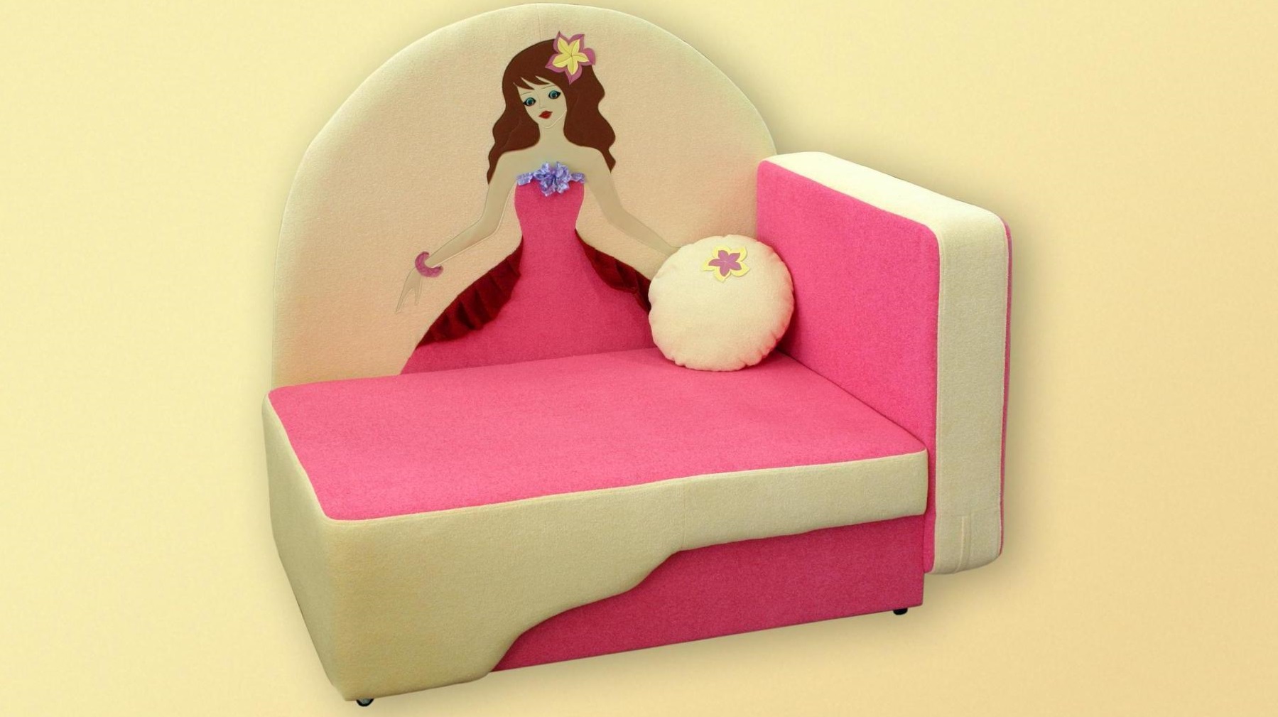 Un élément important est un design attrayant.Chaque bébé veut avoir une belle chambre, y compris avec des meubles intéressants. Essayez de choisir un canapé pour le bébé afin qu'il ait un look magnifique. Les images de divers personnages de contes de fées, de personnages de dessins animés, réalisés en rose ou en violet sont particulièrement populaires.