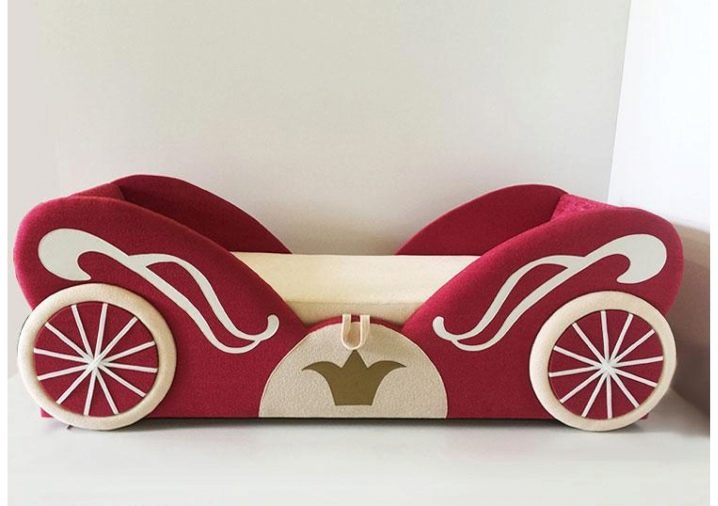 Transport ou Kitty - la décision initiale lors du choix des meubles pour la fille. Ces canapés ont une apparence atypique et élèvent toujours les enfants. L'inconvénient des produits est qu'ils sont toujours dans la même position et ne comportent aucun mécanisme coulissant. De plus, les canapés ne peuvent pas être transformés avec la croissance de l'enfant. Cet achat convient à ceux qui ont un budget familial élevé et sont prêts à changer les meubles à mesure que la fille grandit.
