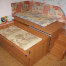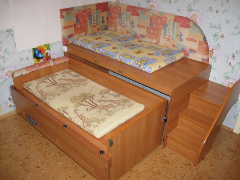 Si les invités viennent chez le bébé, il est préférable de ne pas trouver d’option pour la communication et les jeux tout en économisant beaucoup d’espace. Le canapé, qui constitue souvent le premier étage, peut être utilisé comme une couchette double, se pliant beaucoup en largeur. Familles nombreuses, vivant dans de petits appartements, ce nouveau produit sera très utile.
