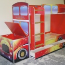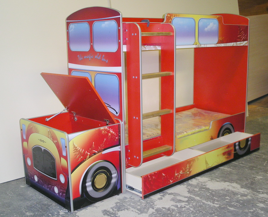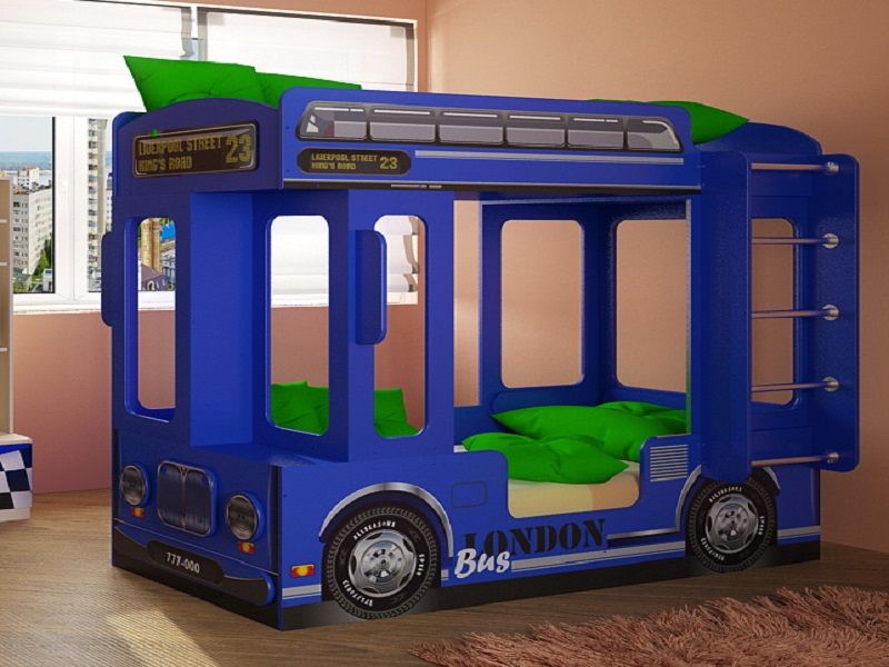 Votre petit garçon aime-t-il les voitures? Ensuite, cette version du lit pour enfant a été créée par des designers pour vous. Les types de voitures et d'autobus sont très divers: voitures de course brillantes, phaétons fermés et même autobus à impériale avec inscriptions. Des lumières éclairées, des roues souples, un siège intérieur spacieux qui sert de lit - tout a l'air d'une vraie voiture. Habituellement, dans la fabrication des lits sous forme de voitures, préfèrent les couleurs les plus vives - bleu, rouge, jaune et noir.