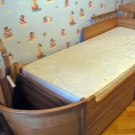 Le lit classique est une couchette traditionnelle, avec dos et inserts. Les côtés de nombreux modèles sont amovibles. Sans eux, le lit a presque un aspect «adulte».
