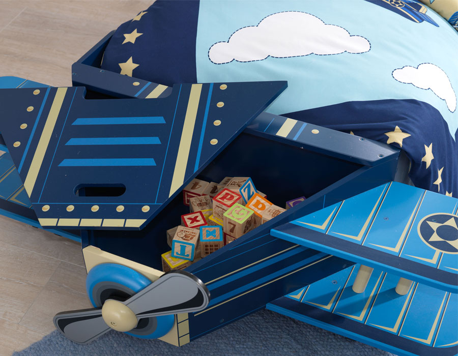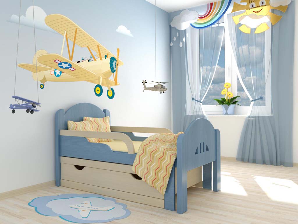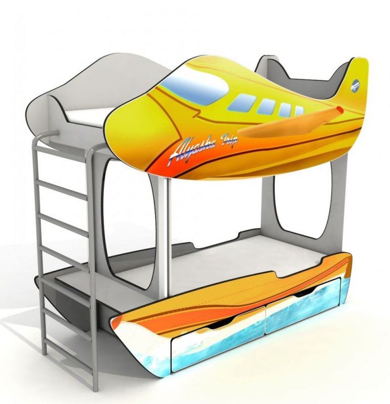 Un avion ou un avion est en mesure de devenir le modèle qui inspirera le garçon à le propulser dans le monde des doux rêves nocturnes. L'avion est très similaire aux deux modèles précédents, et les jolies petites ailes agissent comme des éléments supplémentaires du magnifique décor de la couchette «volante» pour le garçon.
