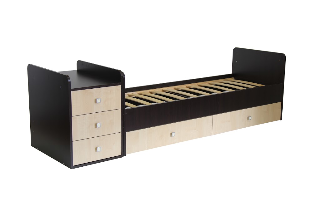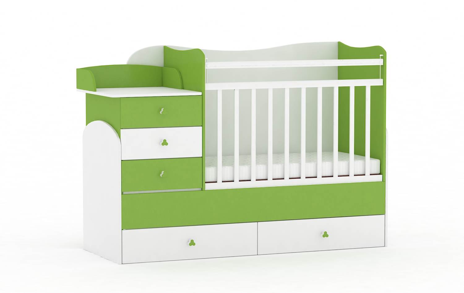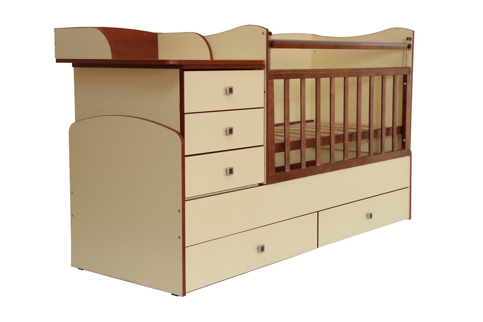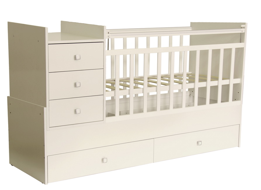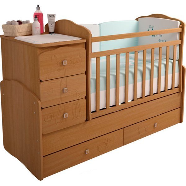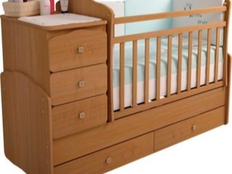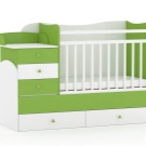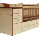 Les transformateurs sont conçus pour les enfants à partir de 8 mois. L'avantage est qu'un tel modèle est transformé en un lieu de couchage pour un enfant plus adulte. Le lit est complété par une bibliothèque, un matelas à langer, une boîte à linge et un bureau. C'est cet ensemble qui fait du lit une salle de bain multifonctionnelle.