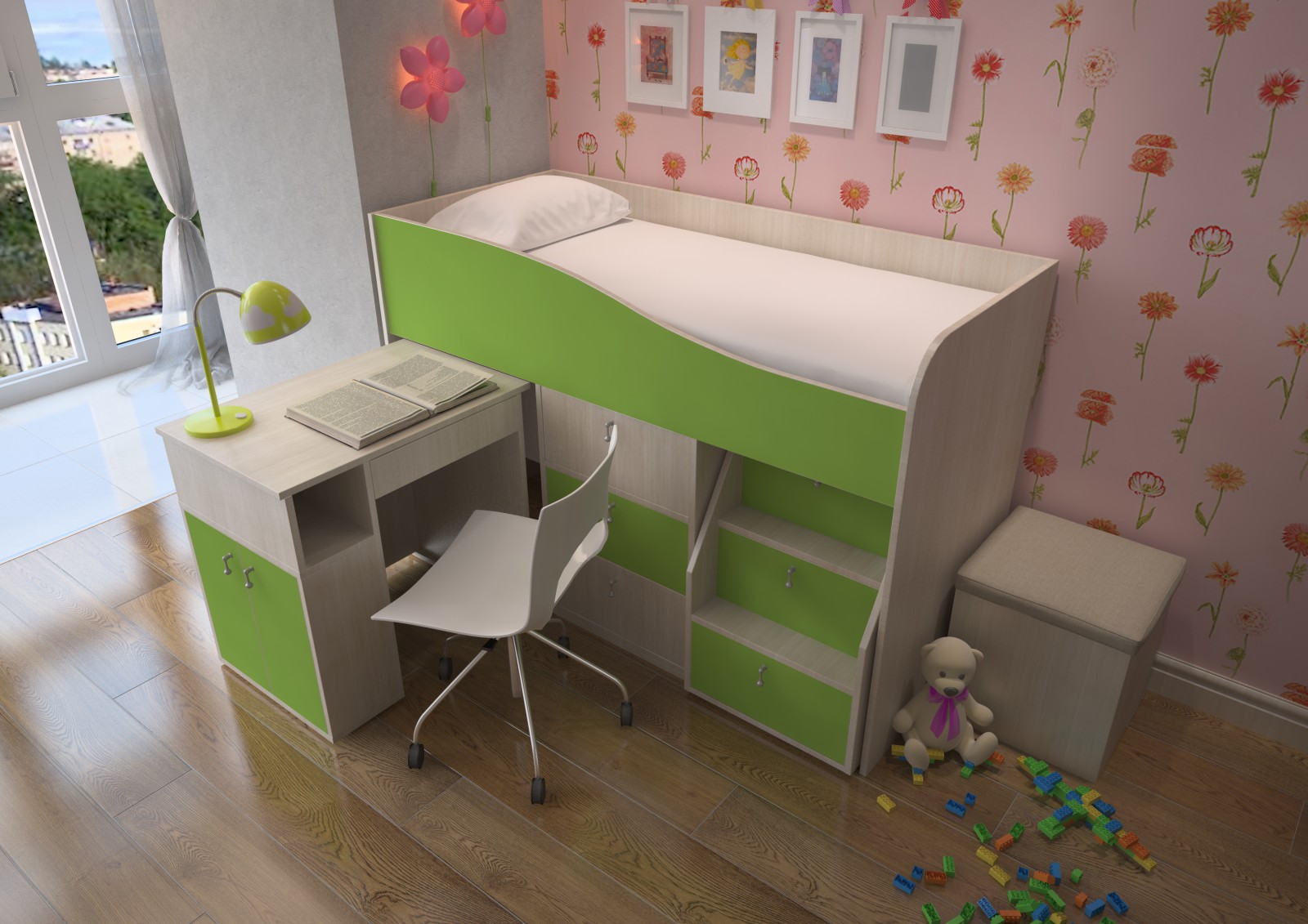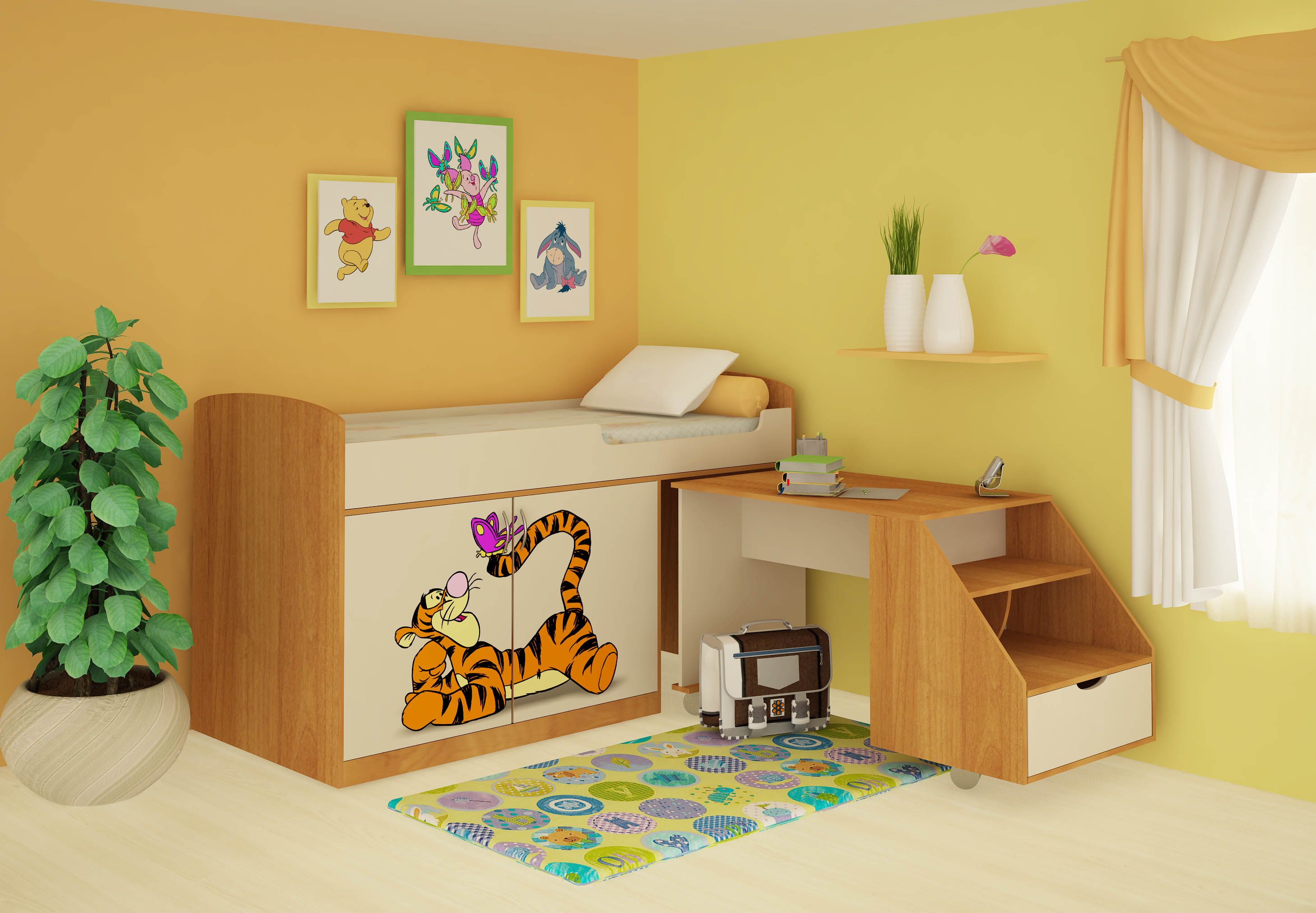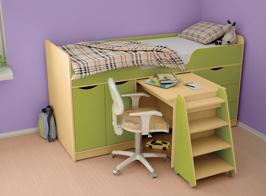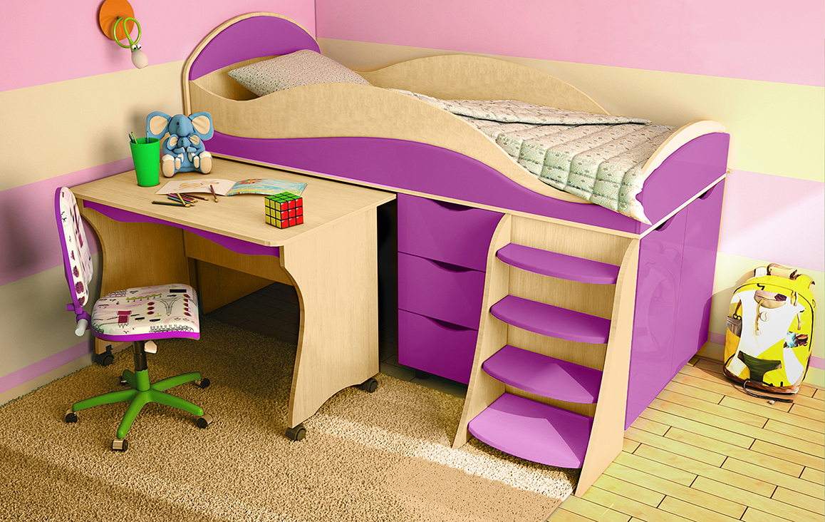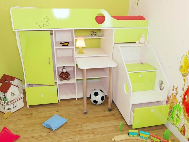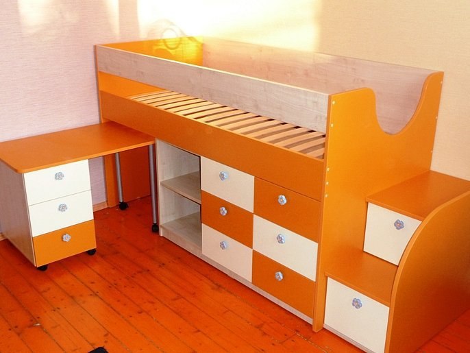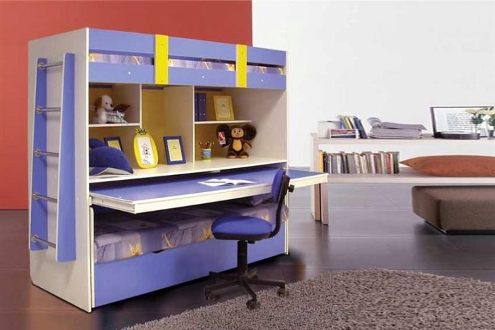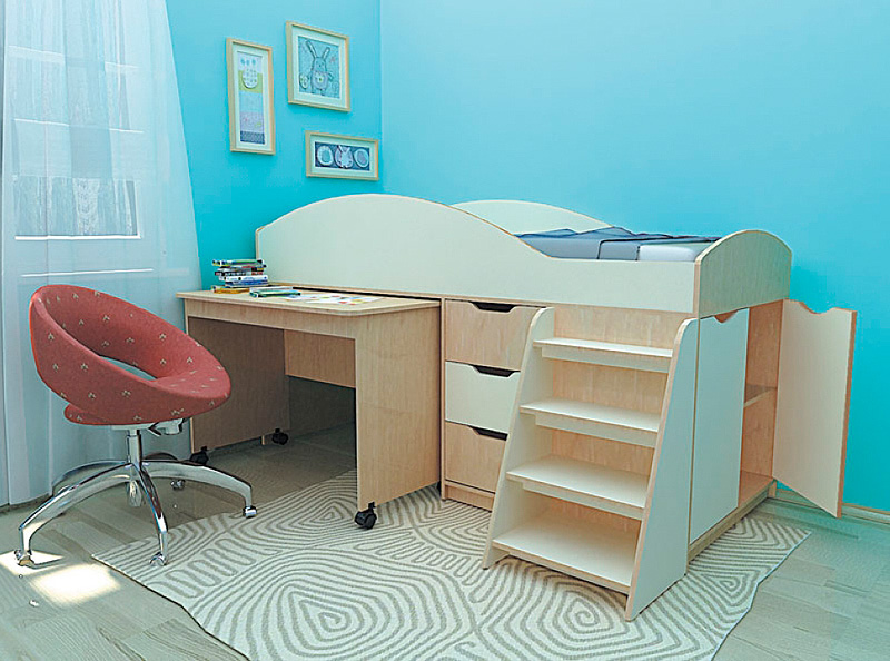 Transformateur de meubles extrêmement pratique et fonctionnel, il vous permet de rendre la chambre de votre enfant élégante et moderne. La particularité de ce type de mobilier est sa capacité à se transformer d'un élément à l'autre. Par exemple, pendant la journée, un enfant peut s'asseoir à une table, étudier et jouer à l'ordinateur. Le soir, cette même table devient un lit confortable. Il est difficile de surestimer les économies d’espace lors de l’installation de meubles transformants.