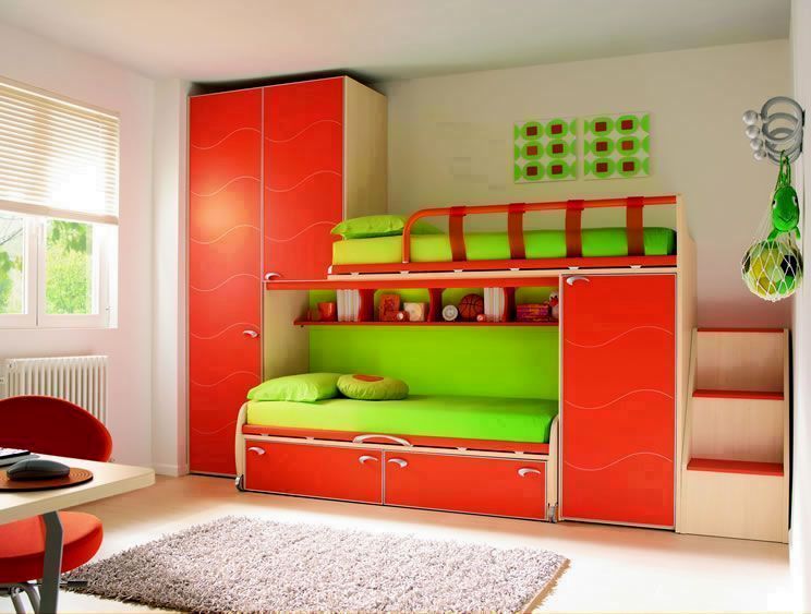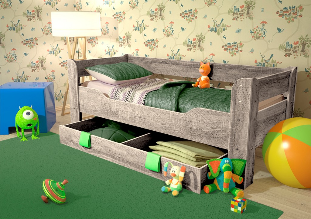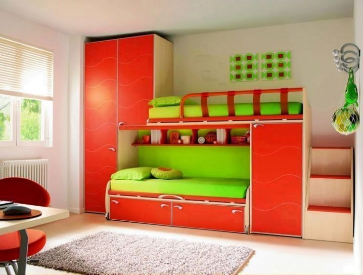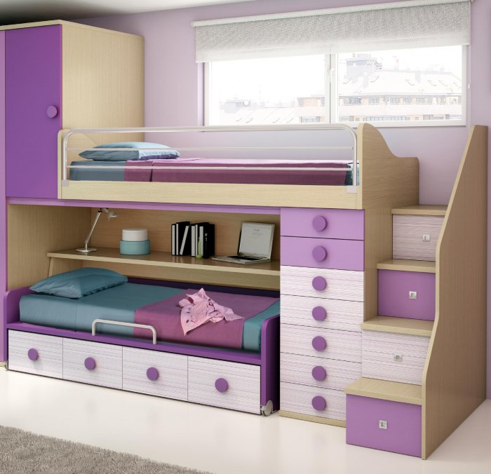 Il existe également l'option d'un lit superposé, lorsqu'un lit se cache sous l'autre, imitant un tiroir. Si nécessaire, le lit est mis en avant et vous obtenez un lit complet.