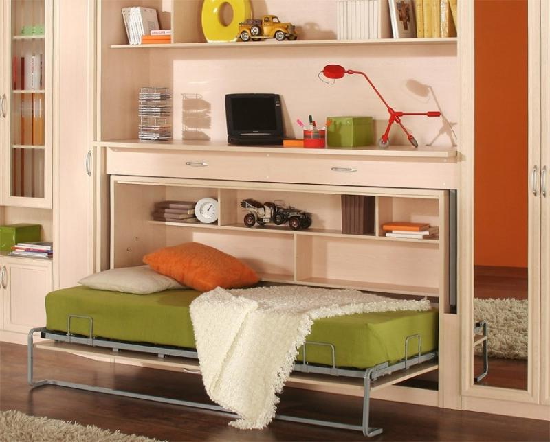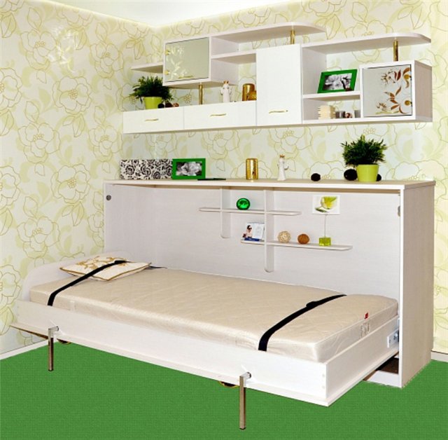 De nombreux modèles ressemblent à un film fantastique, où une chose se transforme facilement en une autre. La base du lit à son tour devient une partie du mur sur lequel vous pouvez accrocher le moniteur à l’ordinateur et ne pas le retirer avant de plier le lit.