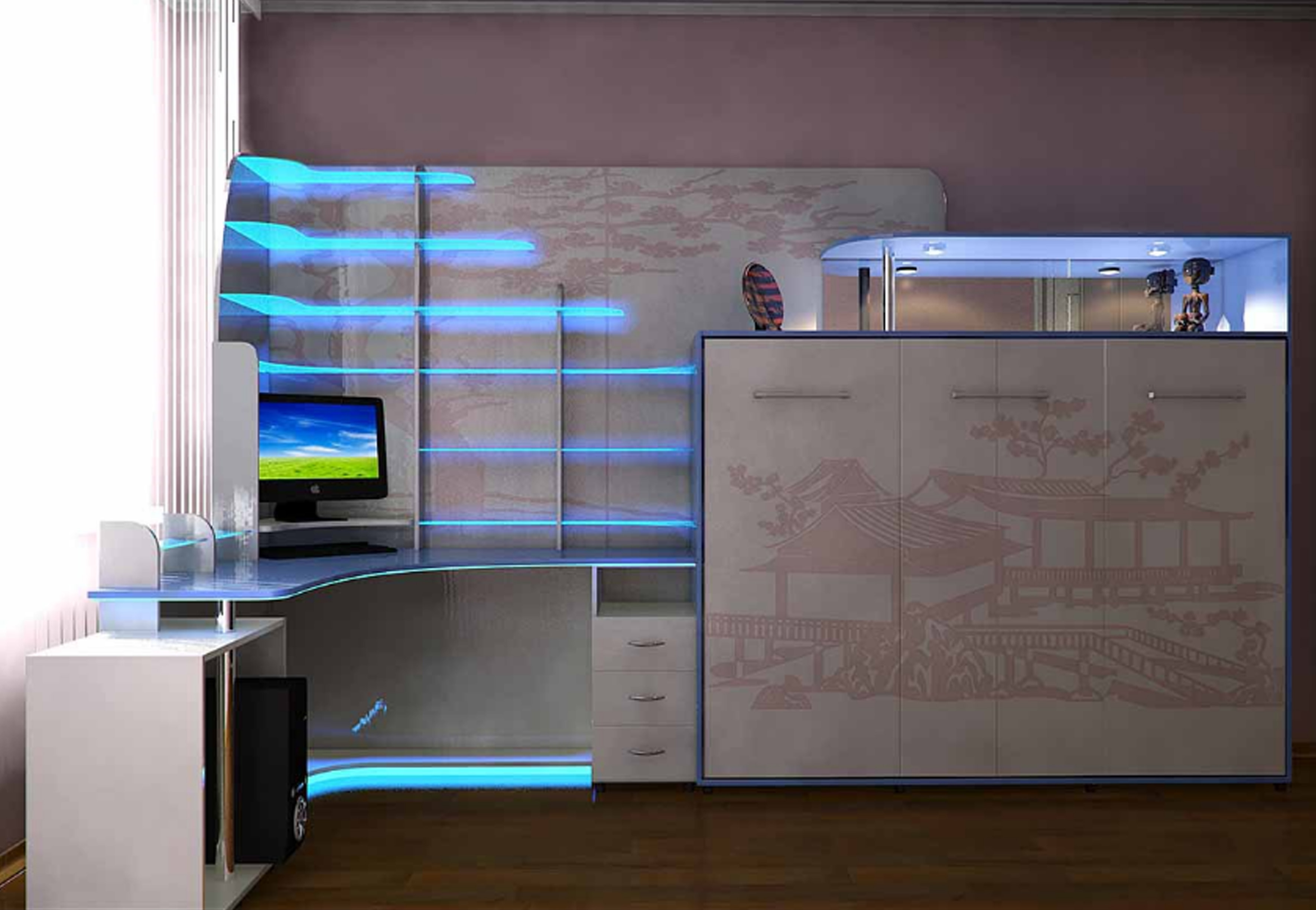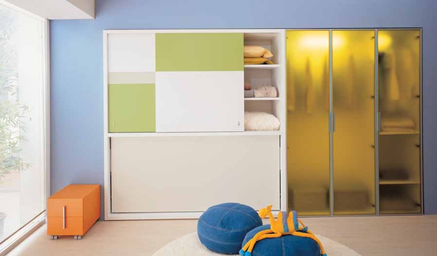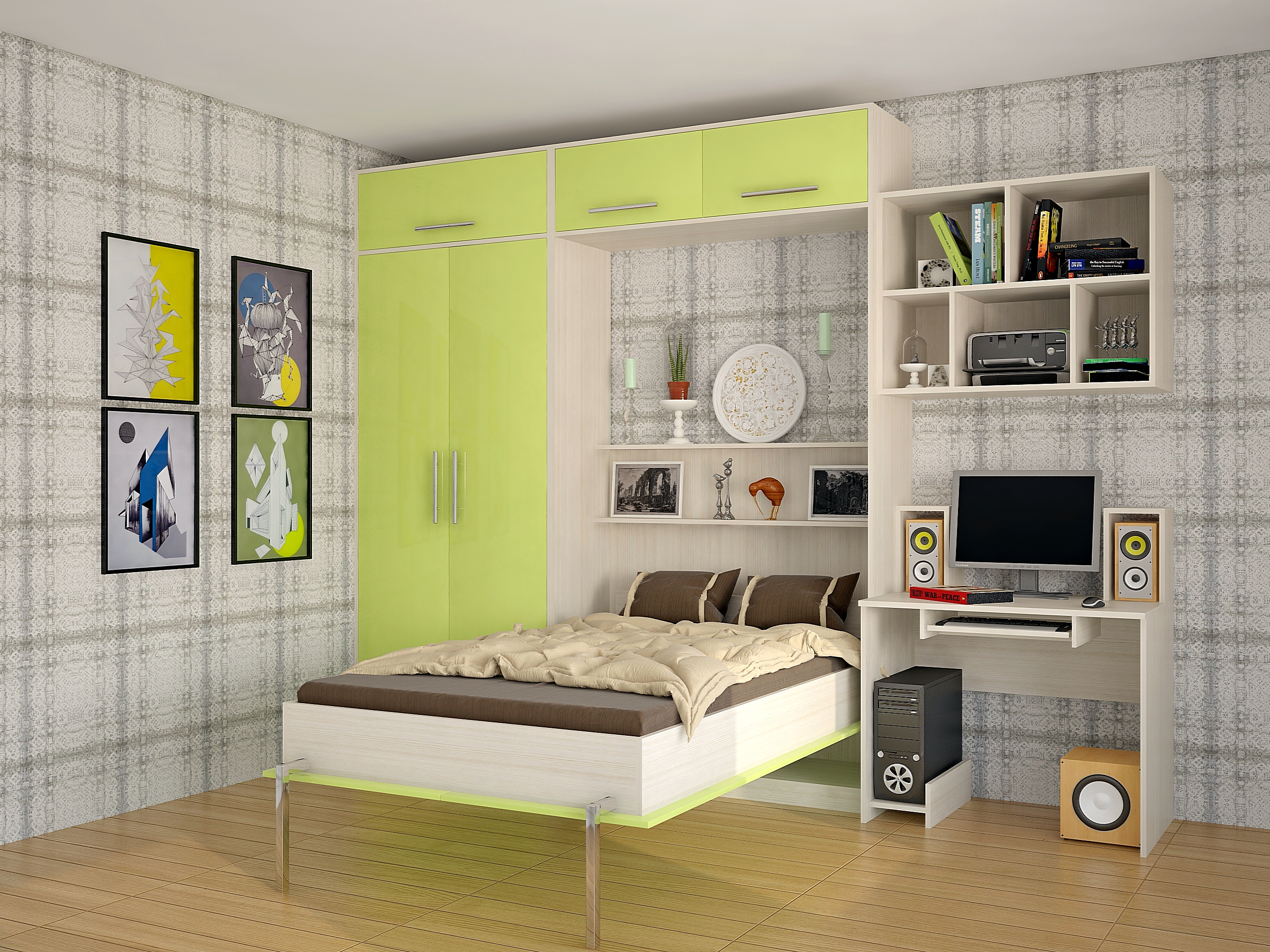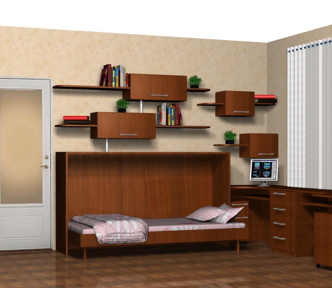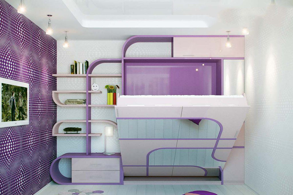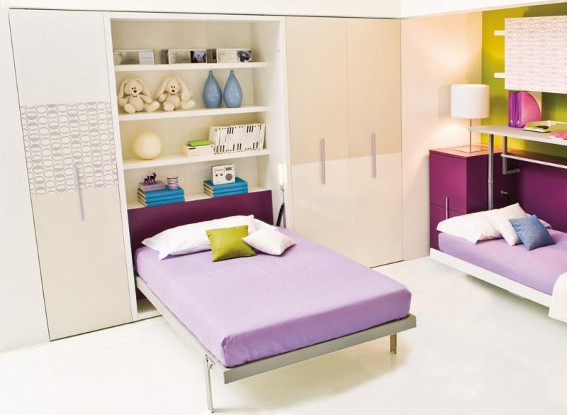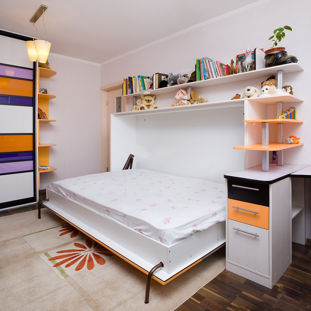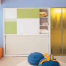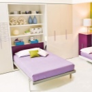 Le lit intégré est l’option économique combinée à un boîtier. Les modèles sont représentés par un ascenseur horizontal ou vertical pour la collecte ou dans une configuration lorsque le lit est adjacent au placard. Les lits encastrés dans les lits sont parfois accompagnés d'armoires latérales ou d'étagères au-dessus du lit. Ils sont très pratiques à utiliser pour les photos, les souvenirs et les livres, ce qui rendra l’intérieur de la chambre plus confortable. Mieux encore, ce modèle convient aux adolescents, car ils présentent une variété de couleurs et l’original, ce qui vous permet de choisir un modèle pour le garçon et la fille.