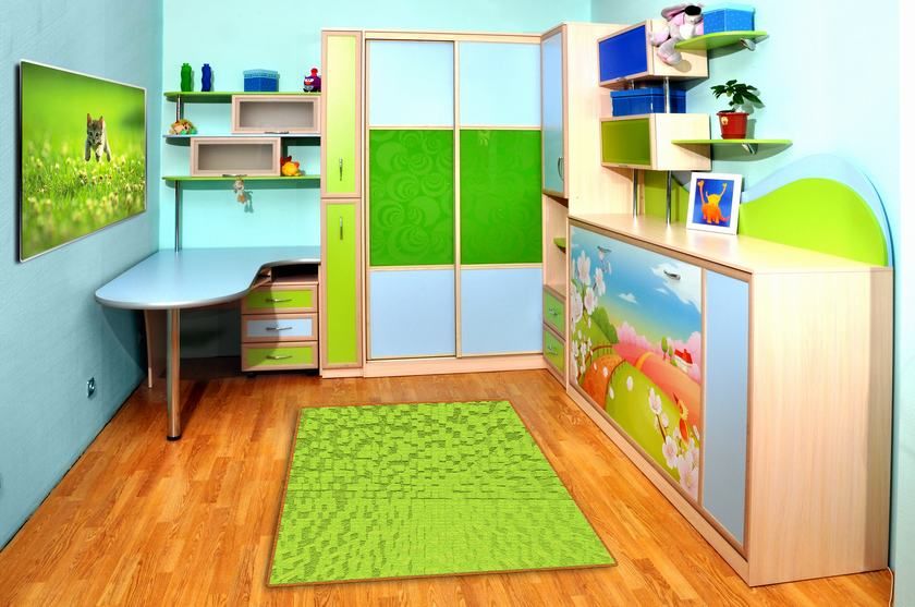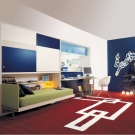 Si dans la pièce les filles doivent régner sur la beauté et le confort, dans la pièce réservée aux garçons, la force et la fonctionnalité l’emporteront, bien que dans ce cas personne n’ait annulé l’esthétique. La sécurité est un point très important, car des angles vifs ou des modèles dangereux peuvent causer des dommages au peu inquiet. Les garçons aiment le football, le sport et d'autres expressions. Ce thème est parfaitement reflété dans la chambre du jeune homme, par exemple un tapis en forme d’herbe verte et sur le mur - un portail ou une épée. Des éléments de l'intérieur bien choisis, reflétant le hobby, sont capables de manifester encore plus d'intérêt.