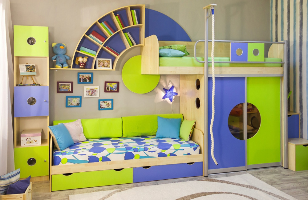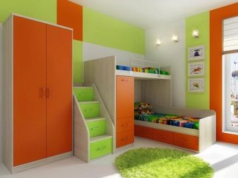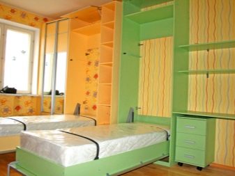 Si vous avez deux amis qui s'entendent bien dans la même pièce, cela vaut la peine d'envisager des options unifiantes. Grâce à l'imagination des concepteurs, les modèles peuvent être pour un garçon et une fille ou pour un adolescent et un bébé. Cette option permet de transformer une pièce en mini-habitation confortable pour enfants, où chaque enfant aura son propre espace personnel.De grandes armoires vous permettent de ranger des livres, des jouets et des vêtements. De confortables lits douillets sont parfaits pour un bon sommeil. Si vous manquez d'espace, envisagez des options avec deux lits gigognes ou une option avec lits superposés.