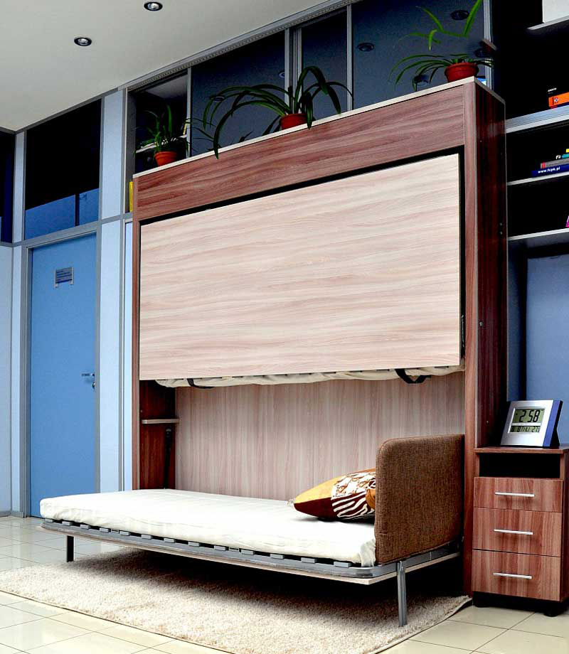 Différents modèles sont présentés dans diverses configurations. Le placard peut être situé sur la tête de lit ou sur le côté du lit. Pour une petite chambre d'enfants, un lit armoire peut être un véritable atout. Modèle très intéressant avec une option de pliage, où le lit est enlevé et libère ainsi de la place pour les jeux.Pour les pièces spacieuses, les concepteurs ont préparé des options pour tout le mur, toujours spectaculaire et incroyablement confortable.