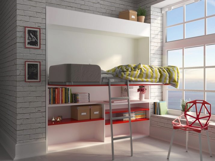 Le regard d'un tel lit, beaucoup d'enfants sont ravis, car il est si inhabituel et hardiment de dormir sous le plafond. Ces modèles sont accompagnés d'une échelle confortable et d'une armoire en bas, et le lit lui-même est clôturé avec de petits côtés afin que l'enfant ne tombe pas pendant le sommeil.Mais lors du choix d'un tel lit, il convient de considérer qu'il existe toujours un risque qu'un enfant tombe dans les escaliers. De plus, votre enfant peut rapidement s'ennuyer pour monter et descendre. Afin de prendre la bonne décision, vous devez peser le pour et le contre.