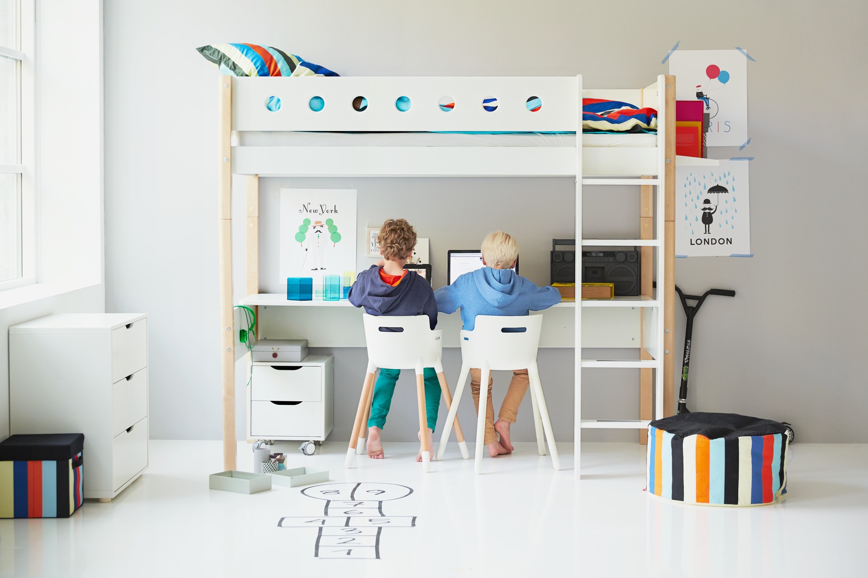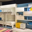 En outre, il y a des lits transformants pour deux enfants. Contrairement aux lits superposés ordinaires, il peut y avoir des tables, des tiroirs, un bureau et d’autres modules nécessaires.
