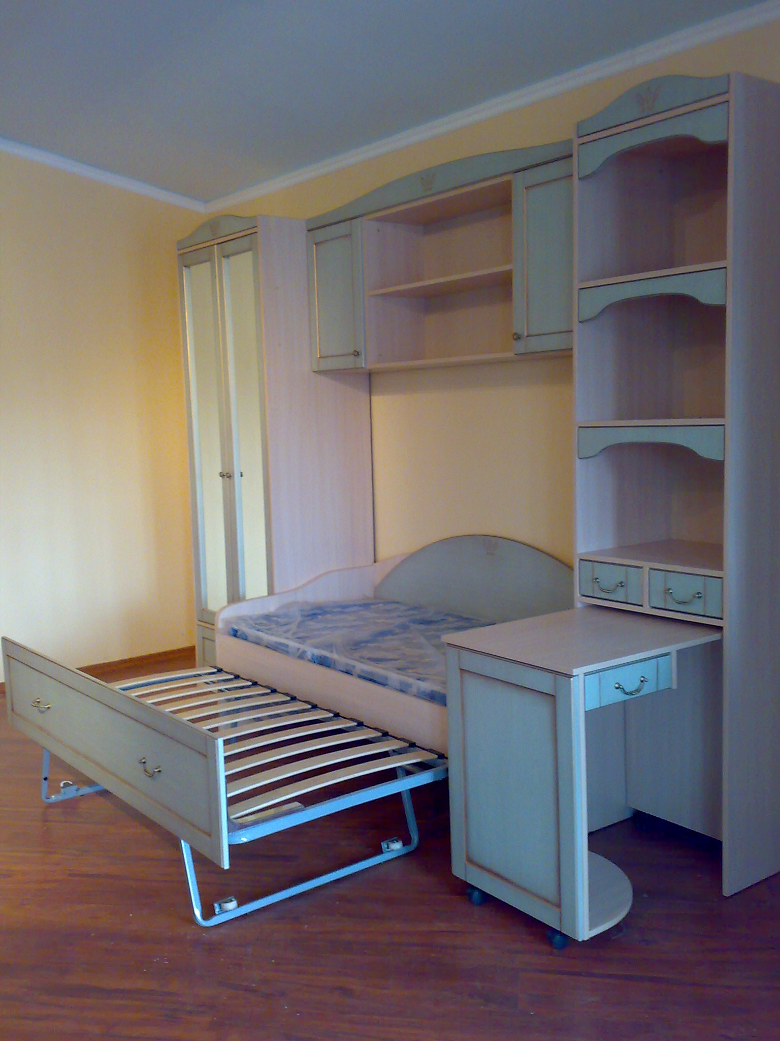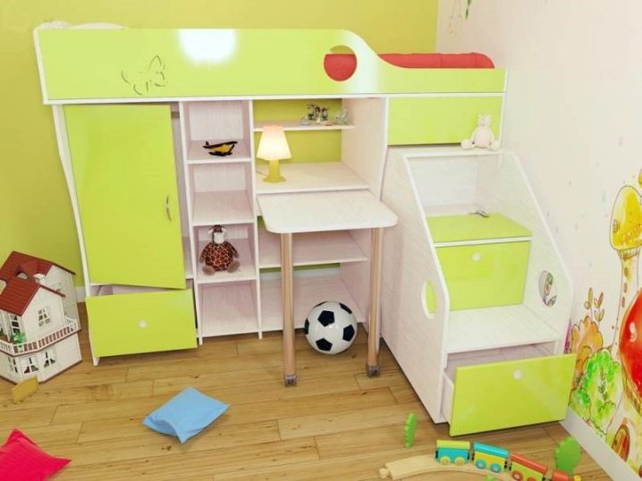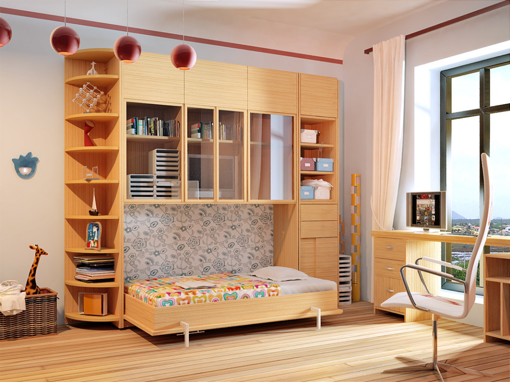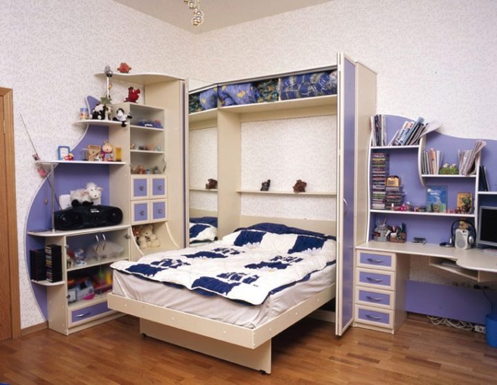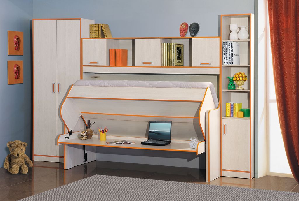 Occupant relativement peu de place, ils remplacent plusieurs meubles à la fois. En plus du lit, le complexe peut comprendre des tiroirs, une table de chevet, une armoire et d’autres éléments nécessaires aux besoins d’un adolescent. Convient bien dans les petites et grandes pièces.