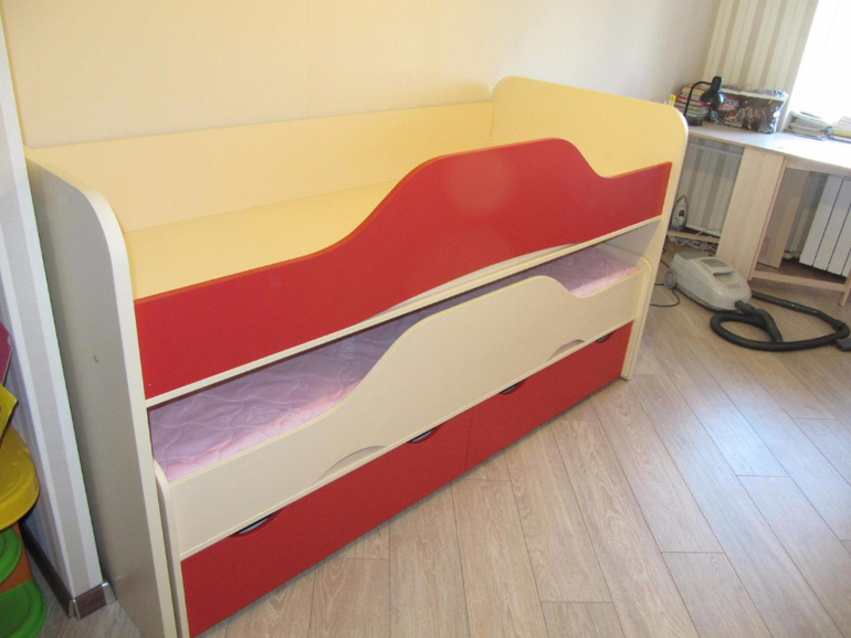 Si vous ne trouvez pas un lit de configuration appropriée, vous pouvez le monter vous-même. Il suffit de développer un dessin individuel et d’acheter tout ce dont vous avez besoin. Presque tous les composants peuvent être achetés indépendamment. De nombreux fabricants de meubles proposent d'assembler les meubles selon un croquis individuel du client. La chambre des enfants sera confortable, spacieuse et unique.