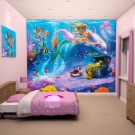 Pour les enfants âgés de 3 ans et plus, vous pouvez coller des fonds d'écran 3D avec une photo de vos personnages préférés de dessins animés ou de contes de fées sur le mur. Le papier photo pour garçon avec l'image de machines ou de super-héros inspirera l'enfant aux jeux actifs. Pour les filles, choisissez un fond d'écran 3D avec l'image de princesses, de sirènes ou de phoques.