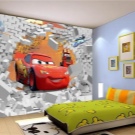 Pour les enfants plus âgés qui vont déjà à l'école, vous devez choisir un fond d'écran 3D au mur en fonction de leurs souhaits. Il peut s'agir de tous les mêmes personnages de dessins animés, par exemple, il est préférable qu'un tel papier peint colle l'espace de jeu pour les enfants.