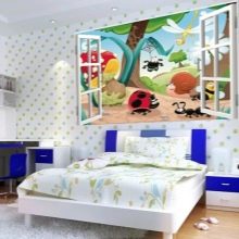 - Le papier peint 3D pour enfants élargit l'espace. Du fait que l'image 3D a une profondeur, elle vous permet de masquer des défauts importants dans la pièce. Cela est particulièrement vrai pour les petites chambres d'enfants. Le papier peint 3D pour enfants aidera à agrandir visuellement la pièce étroite ou à augmenter les plafonds.