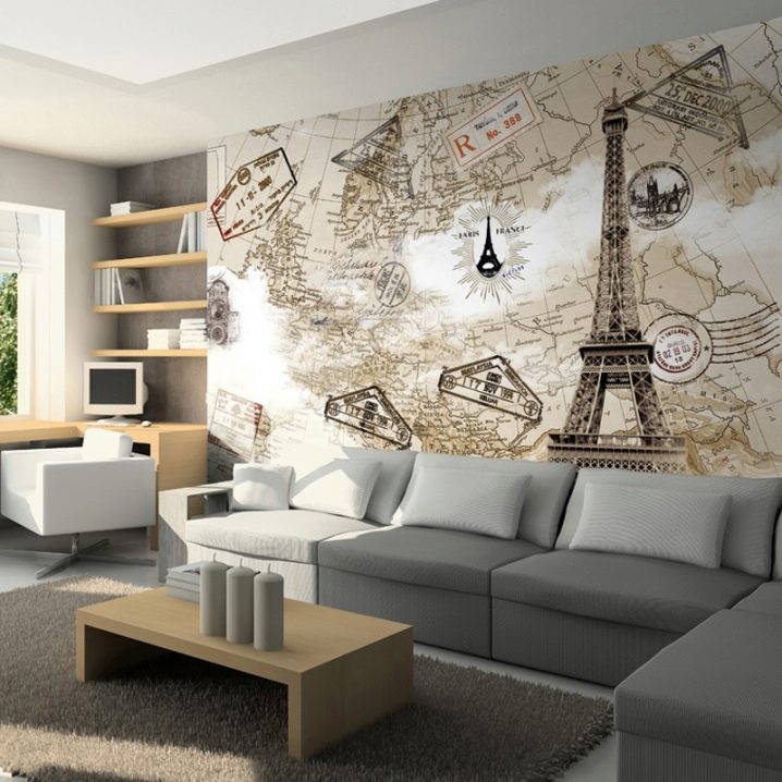 Sur le mur où il y a un pupitre et où l'enfant prend des leçons, il vaut mieux coller le papier peint 3D de nature éducative, par exemple avec l'image d'une carte géographique ou avec des formules. Ces images remplissent deux fonctions: d’une part, servir d’indice et, d’autre part, de stimuler l’enfant à apprendre quelque chose de nouveau.