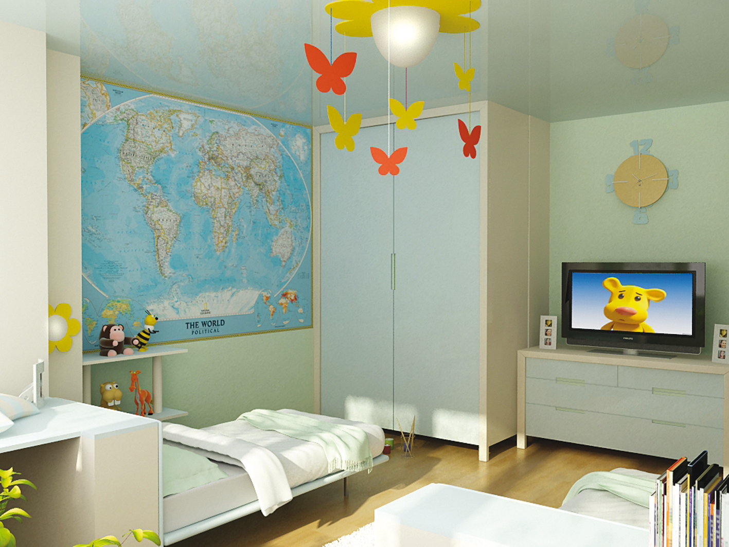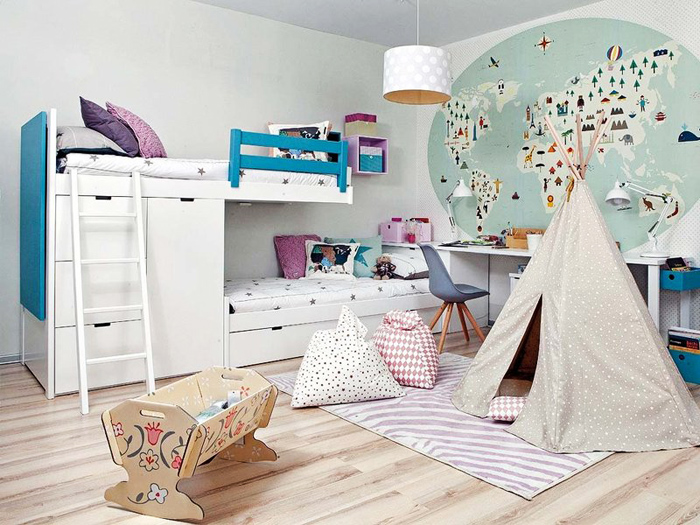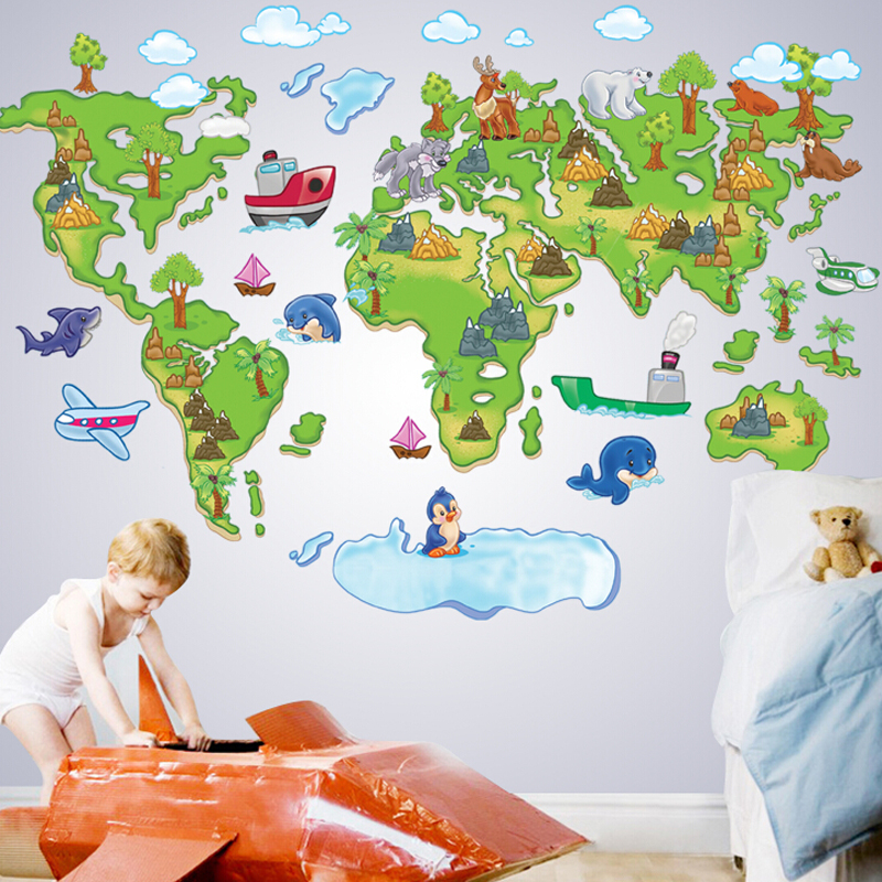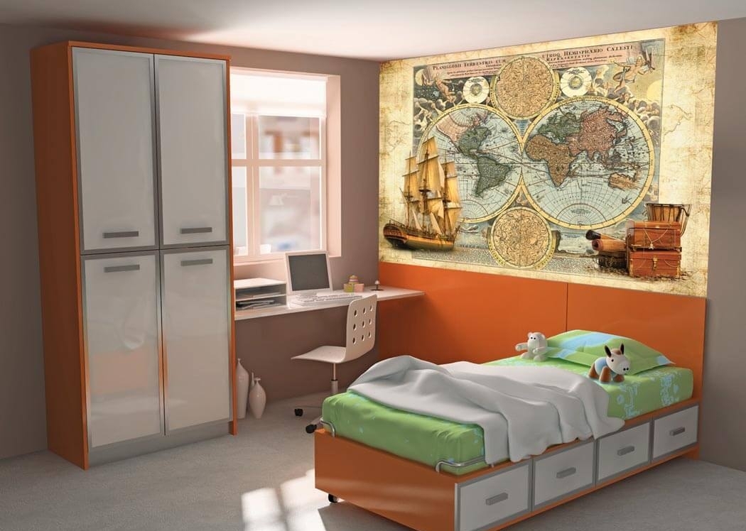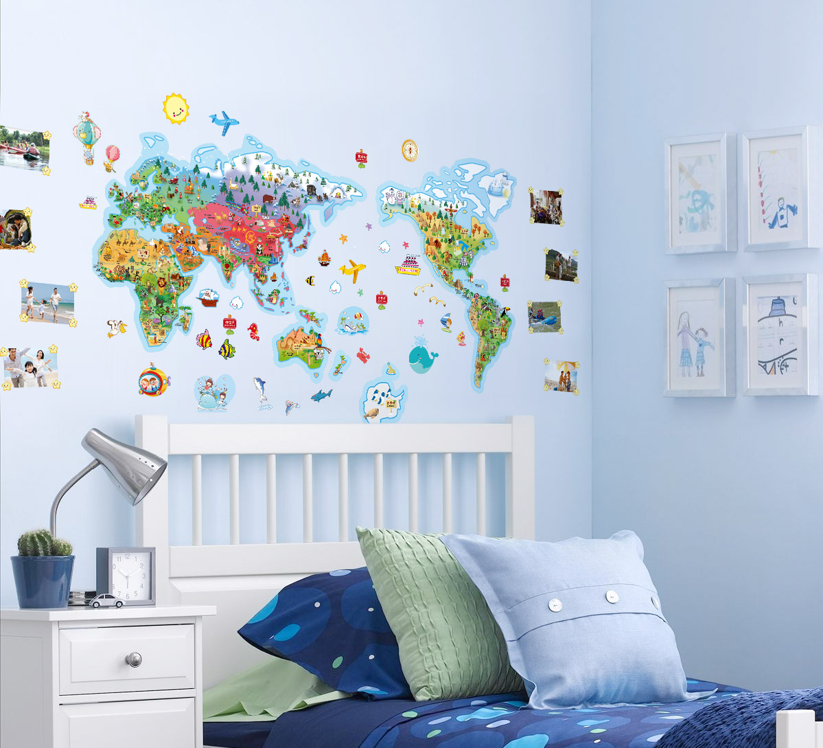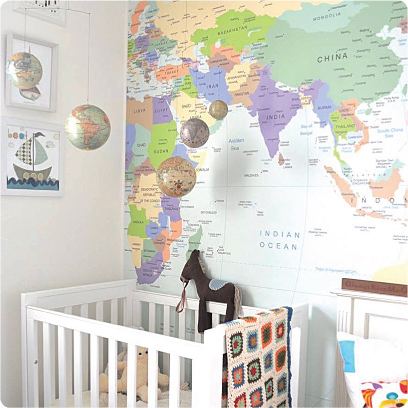 Dans le monde d'aujourd'hui, de nombreuses personnes accordent une attention particulière à l'intérieur de la maison. Les idées originales et inhabituelles sont de plus en plus populaires. La chambre des enfants fait partie intégrante de l'espace familial. Les parents essaient souvent de décorer la chambre d’un enfant en utilisant des méthodes qui influeront de manière positive sur leur développement créatif. L’un d’eux est considéré comme recouvrant le mur à l’aide du papier peint photo «Carte du monde».