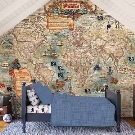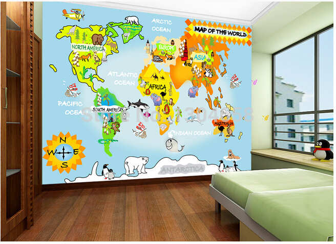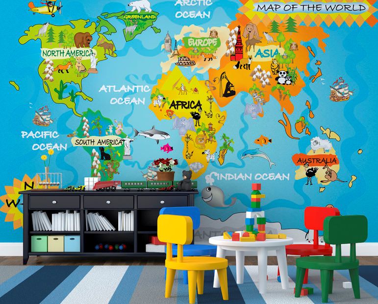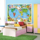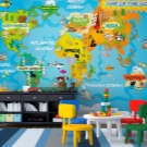 N'oubliez pas non plus le côté éducatif de ce type de papier peint. Aujourd'hui, chez les enfants en bas âge et à l'école, l'intérêt pour les livres et la littérature, la connaissance des choses élémentaires, diminue malheureusement. L'ère des nouvelles technologies et des nouveaux gadgets a conduit Internet à éclipser les publications imprimées, et une recherche rapide et facile d'informations est devenue la norme. Une immense carte du monde devant les yeux d’un enfant est une recherche fascinante de villes, de continents, de rivières, de lacs, etc.Éveiller l’intérêt pour de telles choses est une contribution très importante au développement d’une petite personne.