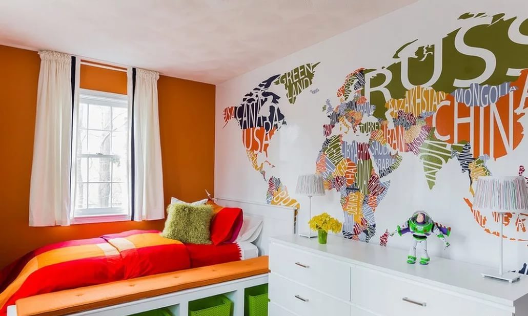En général, vous pouvez choisir une carte de n'importe quel sujet et texture, de n'importe quelle taille et type. Ce sera important comment ça va ressembler dans le contexte de tout l'intérieur. Aussi, pour chaque personne, un point important sera de savoir si cela reflète les goûts et les intérêts de la famille, quel effet cela a sur l'enfant. Chaque choix est individuel, il est donc utile d’envisager plusieurs options et, à la fin, vous pouvez choisir celle qui vous convient le mieux.