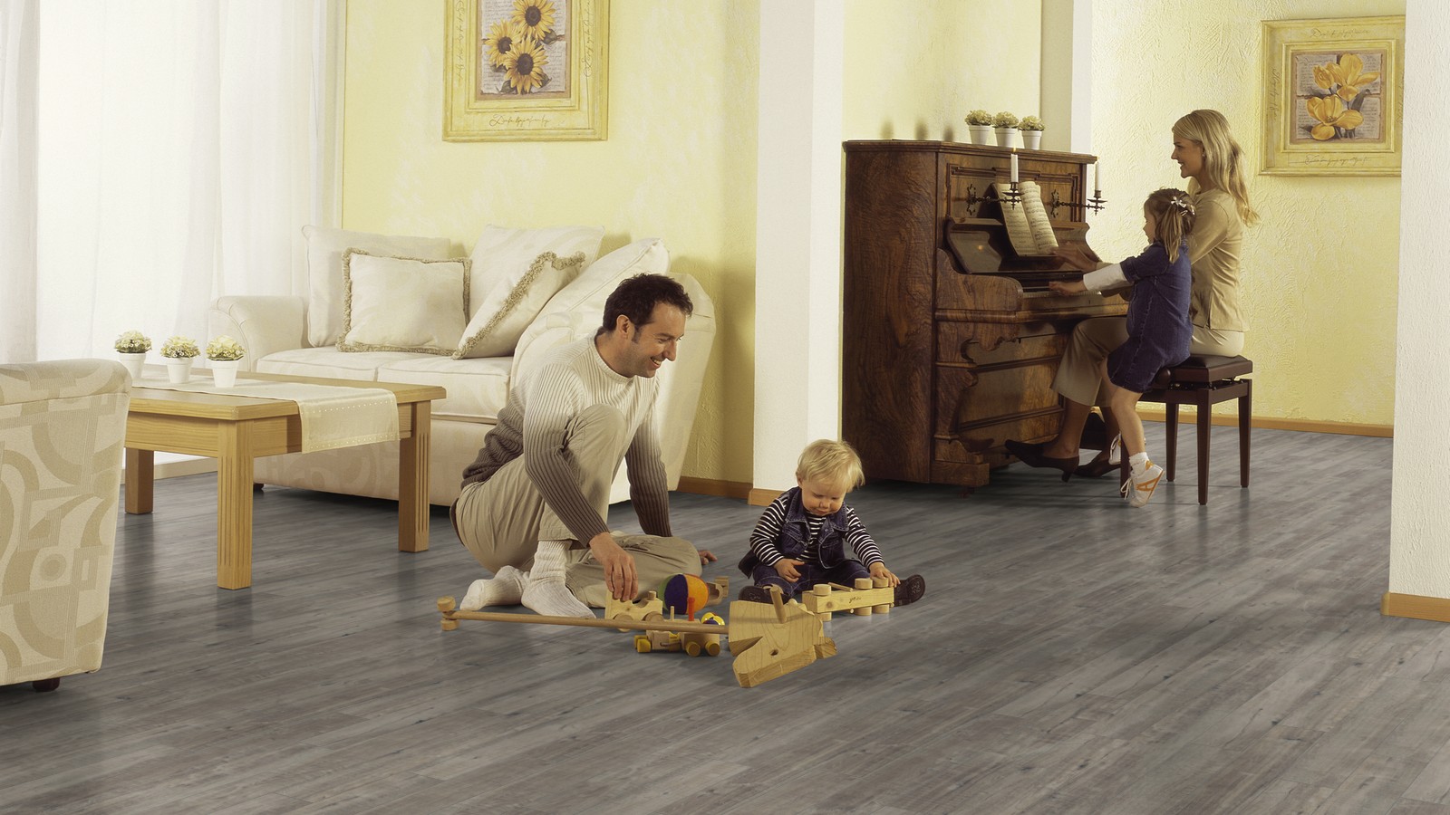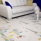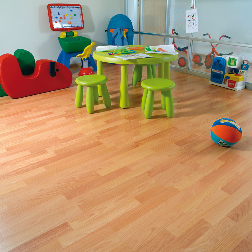 - La texture rugueuse est un critère important pour les revêtements de sol, car c'est la rugosité qui rend le matériau antidérapant. Dans le cas d’une crèche, c’est aussi l’élément principal de la sécurité. Les enfants qui font les premiers pas se sentiront plus confiants sur le stratifié antidérapant et les enfants plus âgés n’utiliseront pas la couverture comme patinoire.
