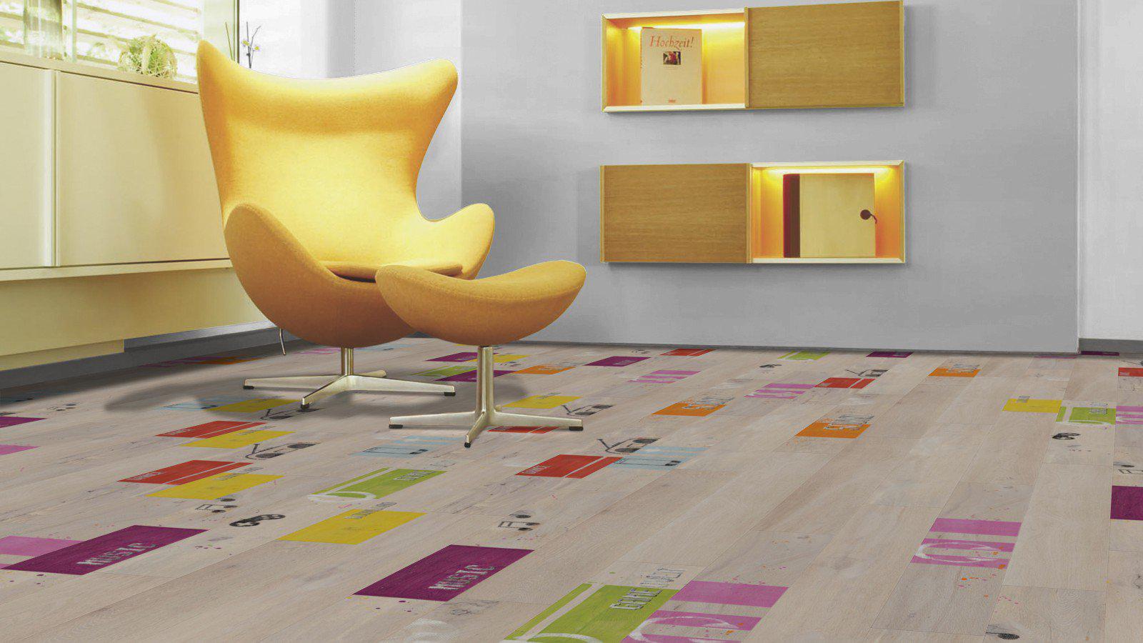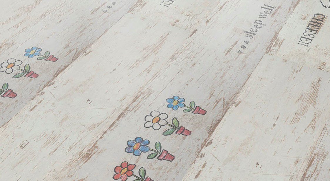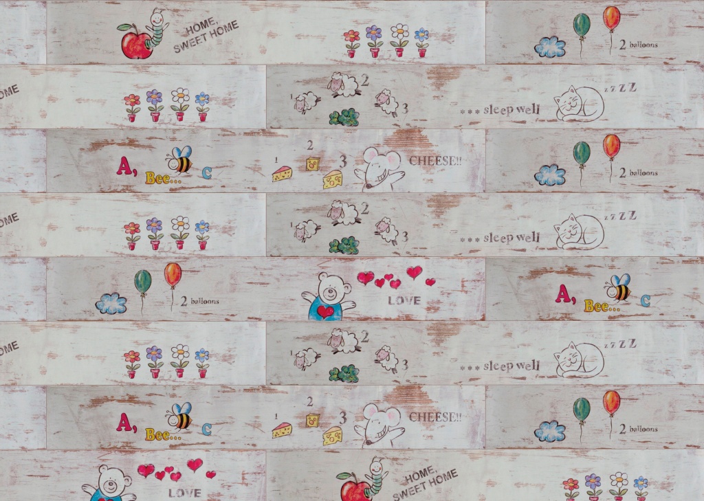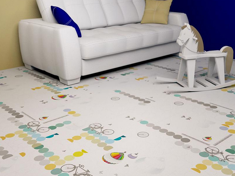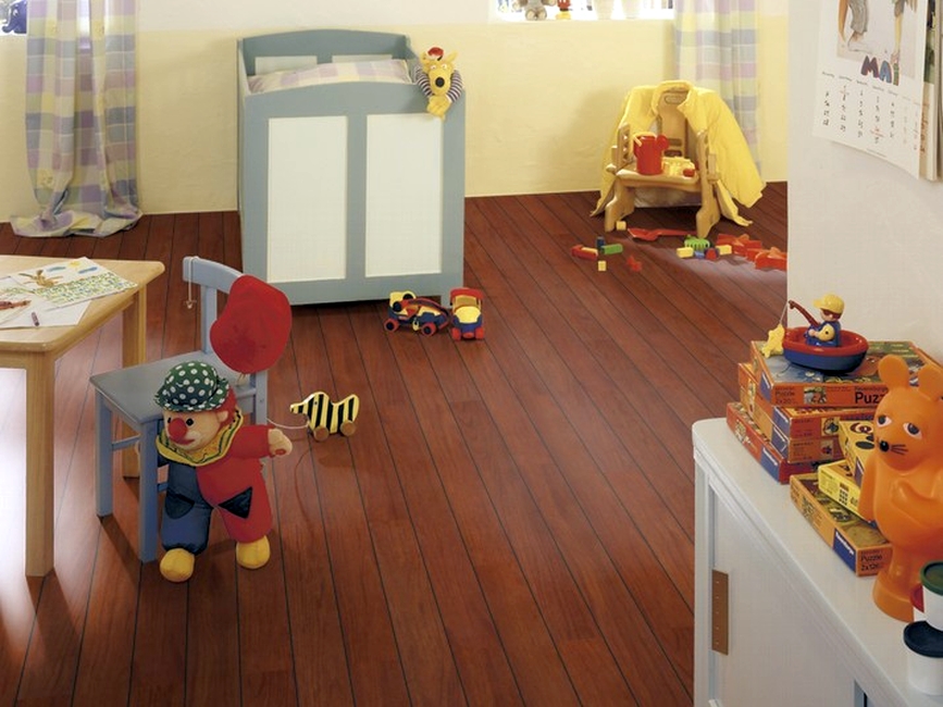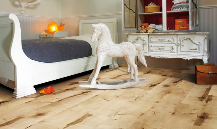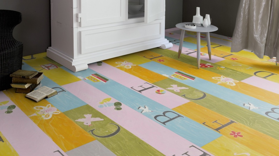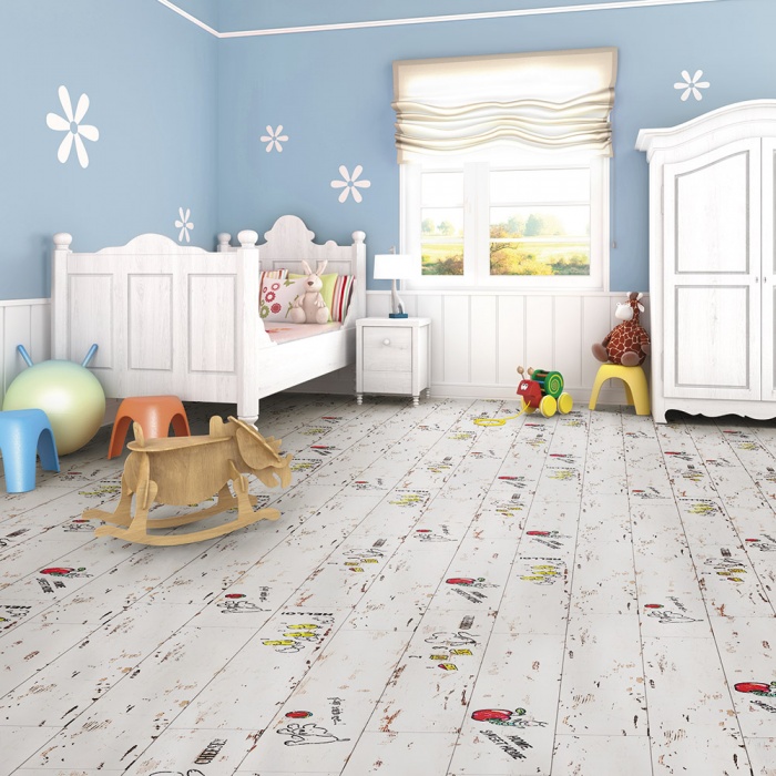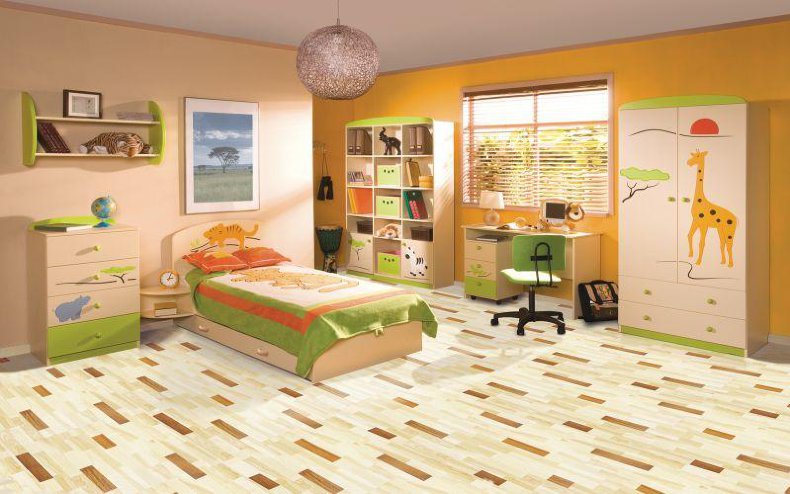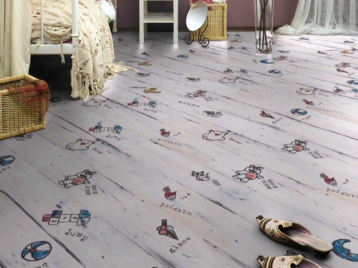 Lors du choix de la bonne image ne doit pas être ignoré l'âge de l'enfant.Il est préférable de poser le sol dans la chambre du bébé avec un stratifié avec un motif petit ou abstrait. Les couleurs du décor doivent être assourdies et l'arrière-plan des sols doit être clair et discret. Souvent, pour les chambres de nourrissons, choisissez des revêtements avec des motifs miniatures, comme s'ils étaient peints à la main d'un enfant.