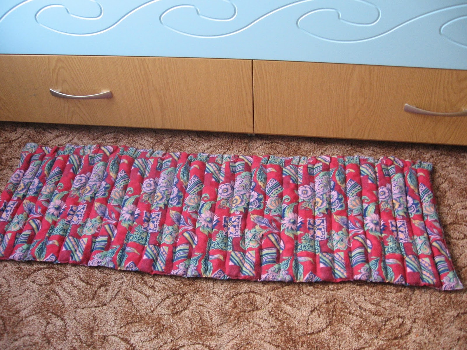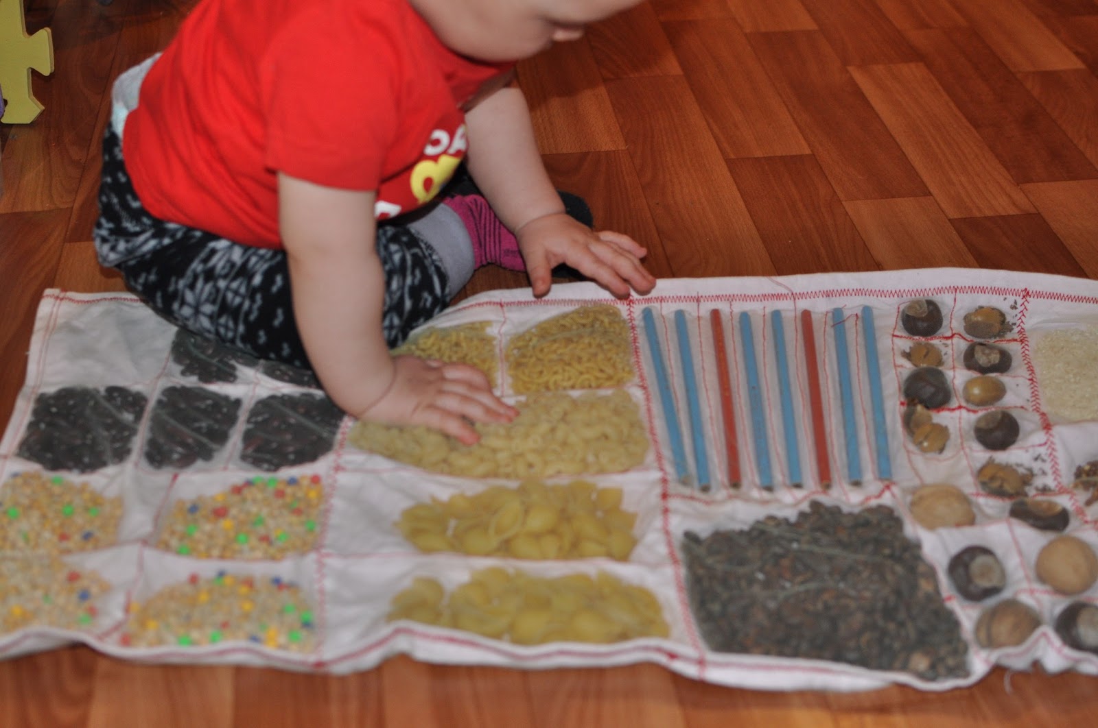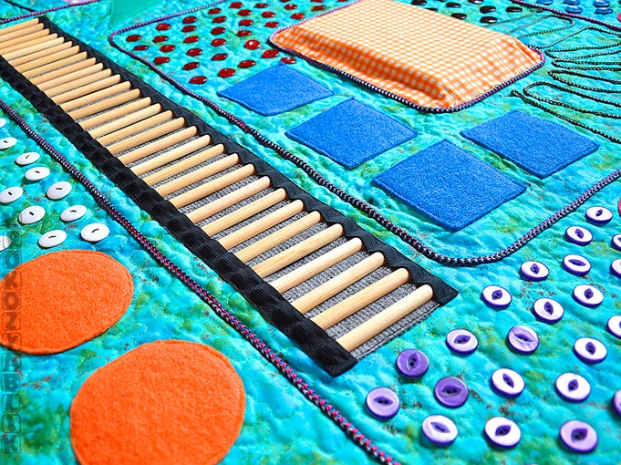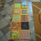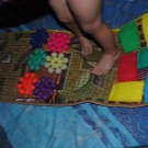 Si les boutons et les autres petites pièces vous cousent bien, vous pouvez coudre les poches des serrures et simplement y insérer divers remplissages. Il peut s'agir de chiffons - vous obtenez des bosses douces et divers produits d'épicerie tels que le sarrasin, les pois et les haricots - des bosses plus dures. Vous pouvez décorer un tapis de différentes manières, ce qui suffit à votre imagination, mais plus le tapis est drôle, plus il est facile d'attirer un enfant à le pratiquer.