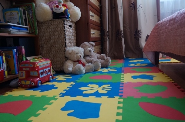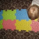 Les plus populaires sont les tapis colorés sous forme de puzzles. Les enfants les perçoivent comme un jouet, ils aiment collectionner les énigmes et les cours sur un tel tapis ne leur causent pas d'agressivité. De plus, il est facile de faire la bonne taille. Et facile à laver dans une solution savonneuse.
