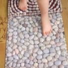 Nous faisons d'abord la fondation. Pour cela, vous pouvez utiliser une feuille de feutre dur ou un autre matériau dense. Vous pouvez insérer un insert en plastique et le recouvrir de n'importe quelle matière. Ensuite, nous cousons toutes sortes d'irrégularités sur le tapis de massage. Les cailloux, les haricots peuvent être collés.