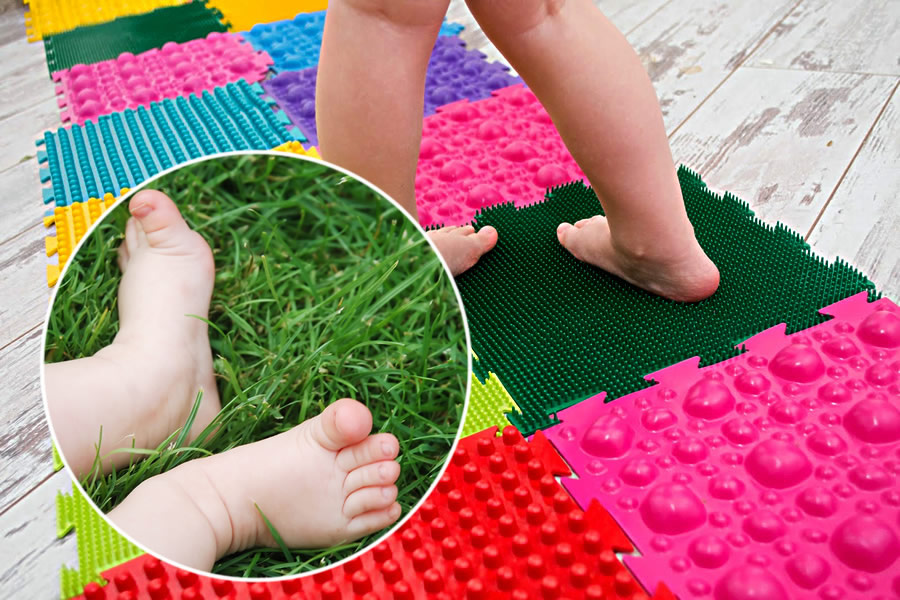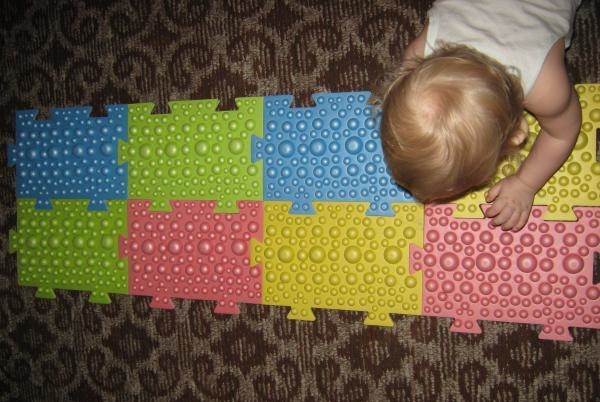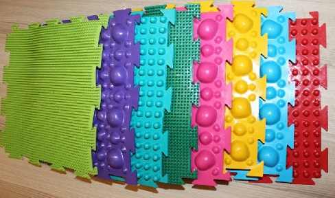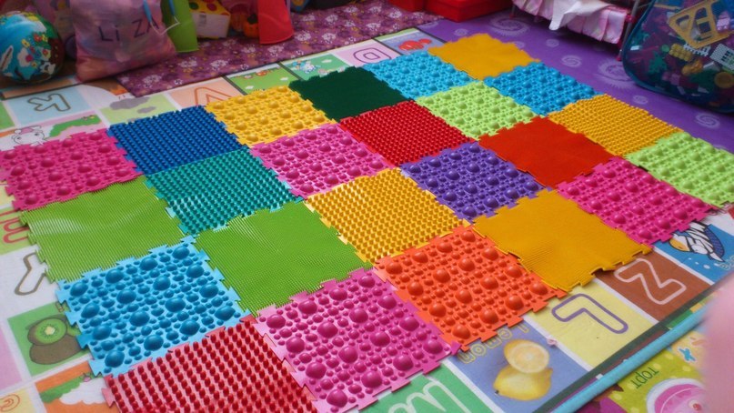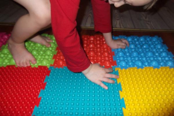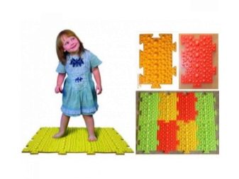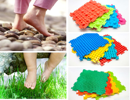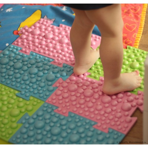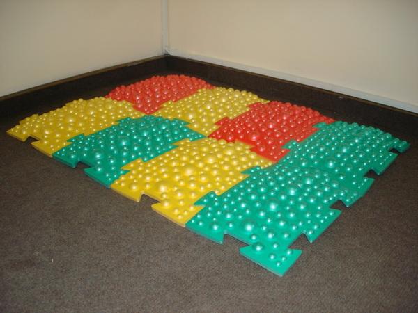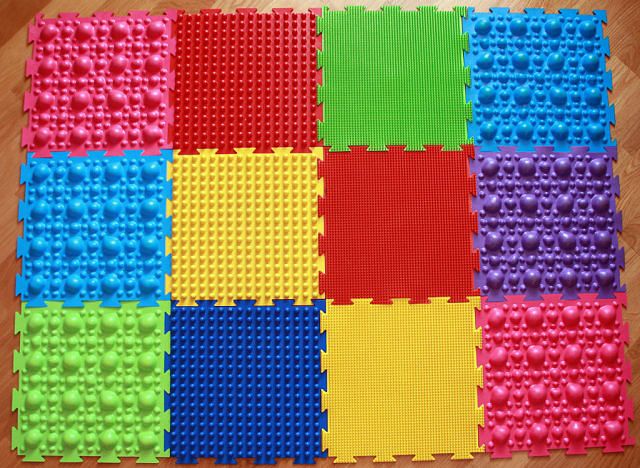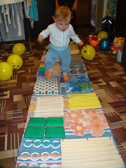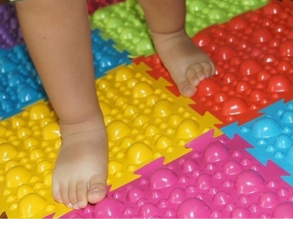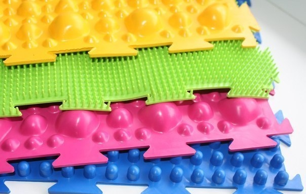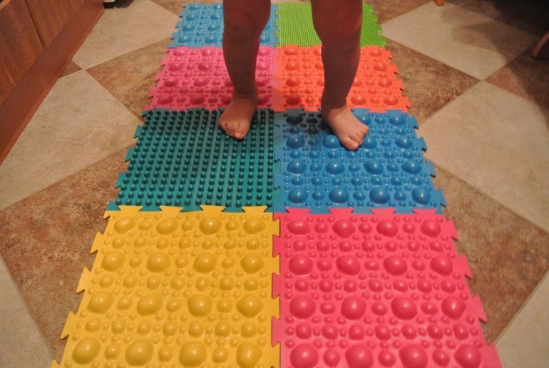 - Dans la crèche, vous pouvez fixer les tapis de massage sous la forme de bosses, en sautant de l'un à l'autre, l'enfant recevra un massage ponctuel des pieds.