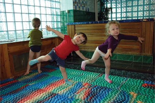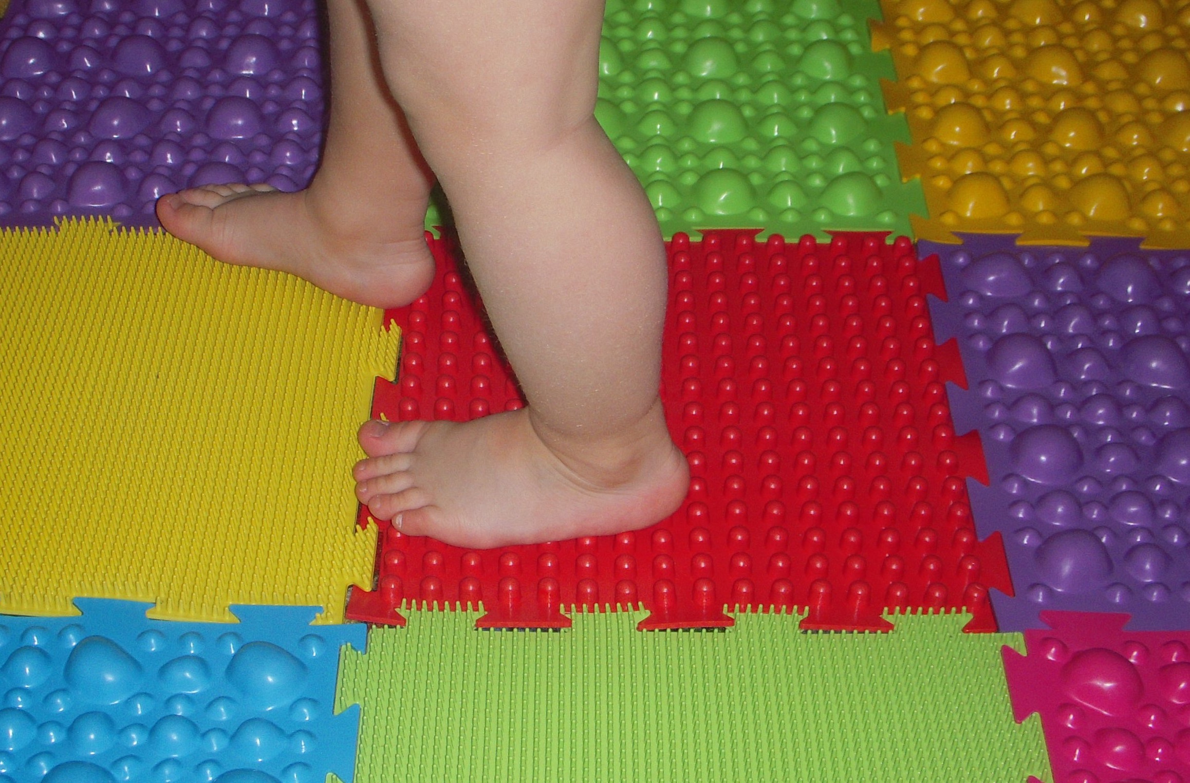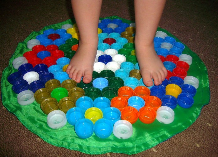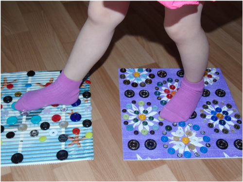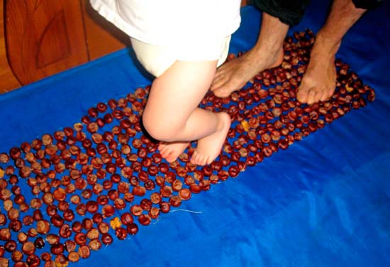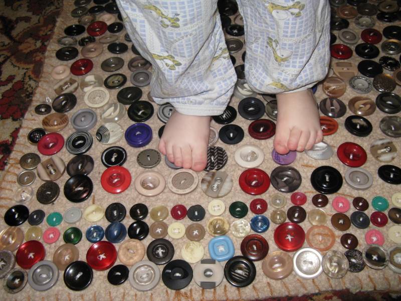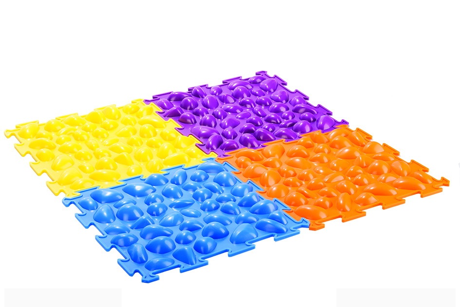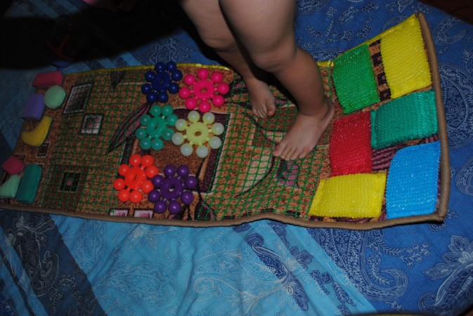 - Dans la crèche, vous pouvez fixer les tapis de massage sous la forme de bosses, en sautant de l'un à l'autre, l'enfant recevra un massage ponctuel des pieds.