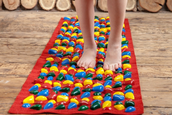 - Placez un tapis de massage près du lit pour obliger l’enfant, chaque fois qu’il s’approche de lui ou s’en levant, à marcher dessus.
