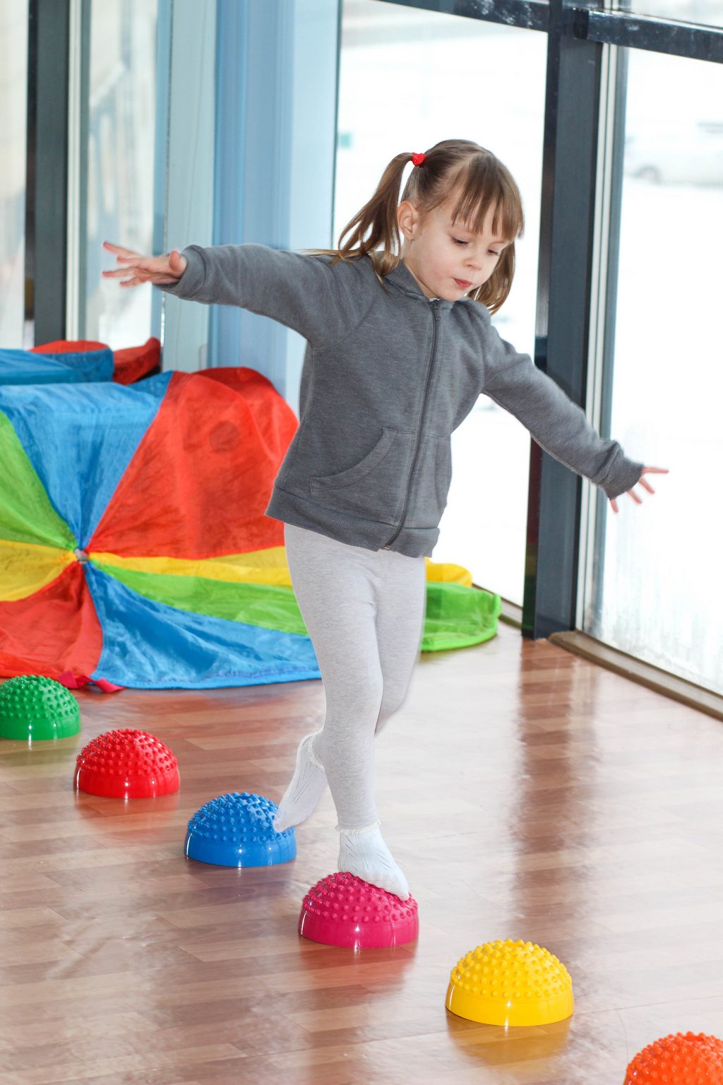 Par la suite, vous pouvez ajouter des sauts sur une jambe et sur les deux jambes, courir, s’accroupir, marcher "en file indienne".